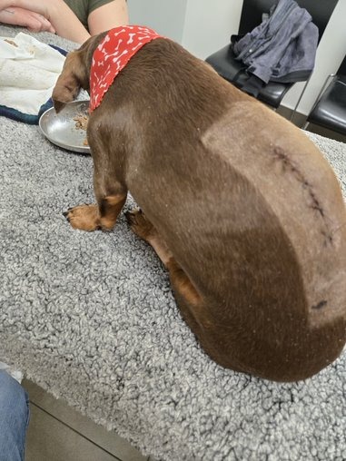 A few days ago, Noisette was diagnosed with a type 1 disc herniation at T13-L1. The verdict was devastating: it’s a disc extrusion, a severe form that left her paralyzed in just a few short hours. She was in pain, unable to walk, and needed emergency surgery in order to have any hope of regaining use of her back legs.