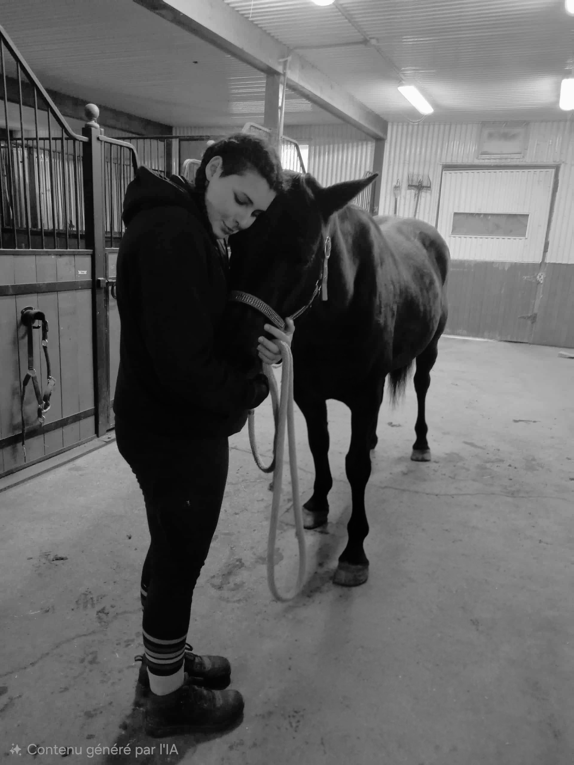 Je m'appelle Ella Le charpentier et je me trouve aujourd'hui dans une situation très particulière. Originaire de France, j’ai émigré au Canada avec l’espoir de m’y installer définitivement. Sur place, j’ai acheté un poulain et j’ai tout fait moi-même : entraînement, débourrage, et nous avons tissé un lien extrêmement fort. Mon cheval est bien plus qu’un simple animal, il fait partie de ma famille.