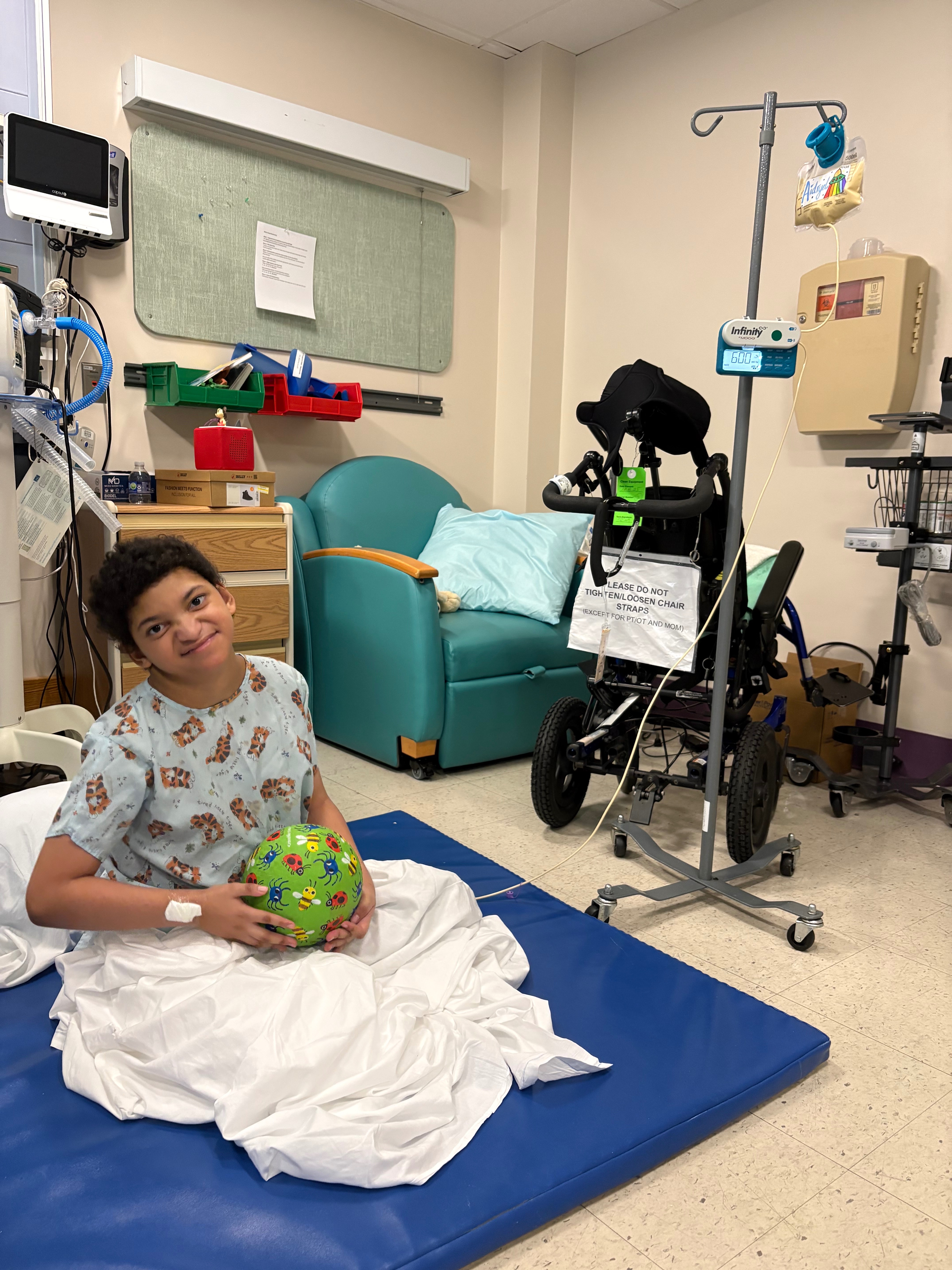 10 years ago Aidryel was born and the first 6 months of his tender little life he lived in Boston Children’s Hospital. Since then he has had numerous operations trying to correct his issues. He’s had so many set backs with pneumonia and seizures, and a host of medical issues none of us ever saw coming. He’s 10 and has never even eaten or drank anything by mouth. He has severe oral aversion and is g-tube dependent. Over the years Aidryel had learned to talk some although his mental status was young. He even learned to walk on his own-short paces by the time he was 7. Two years ago seizures and recurrent pneumonia increased in a big big way and he has lost those abilities and we have no idea if he’ll ever regain them again..