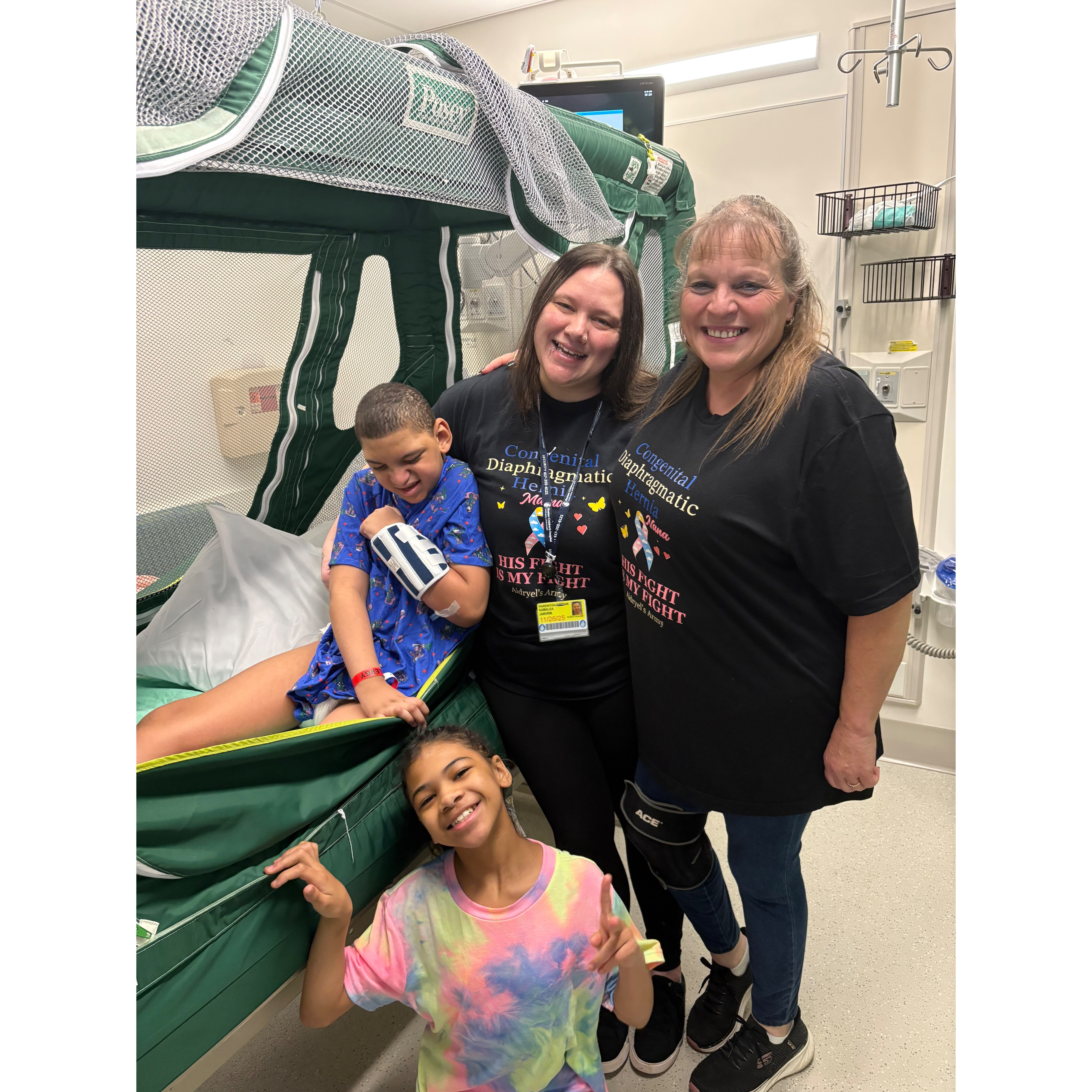 He recently just underwent a 10 hour surgery 4 days ago on October. 30, 2025 to repair his diaphragm for the 4th time. In the CT Scan they saw Aidryel’s mesh patch had lifted away from his diaphragm, allowing his large intestine back into his chest cavity putting pressure on his lungs, heart and esophagus. (most children with this birth defect need this surgery ONE TIME and this was Aidryel’s FOURTH surgery just for this one issue.)