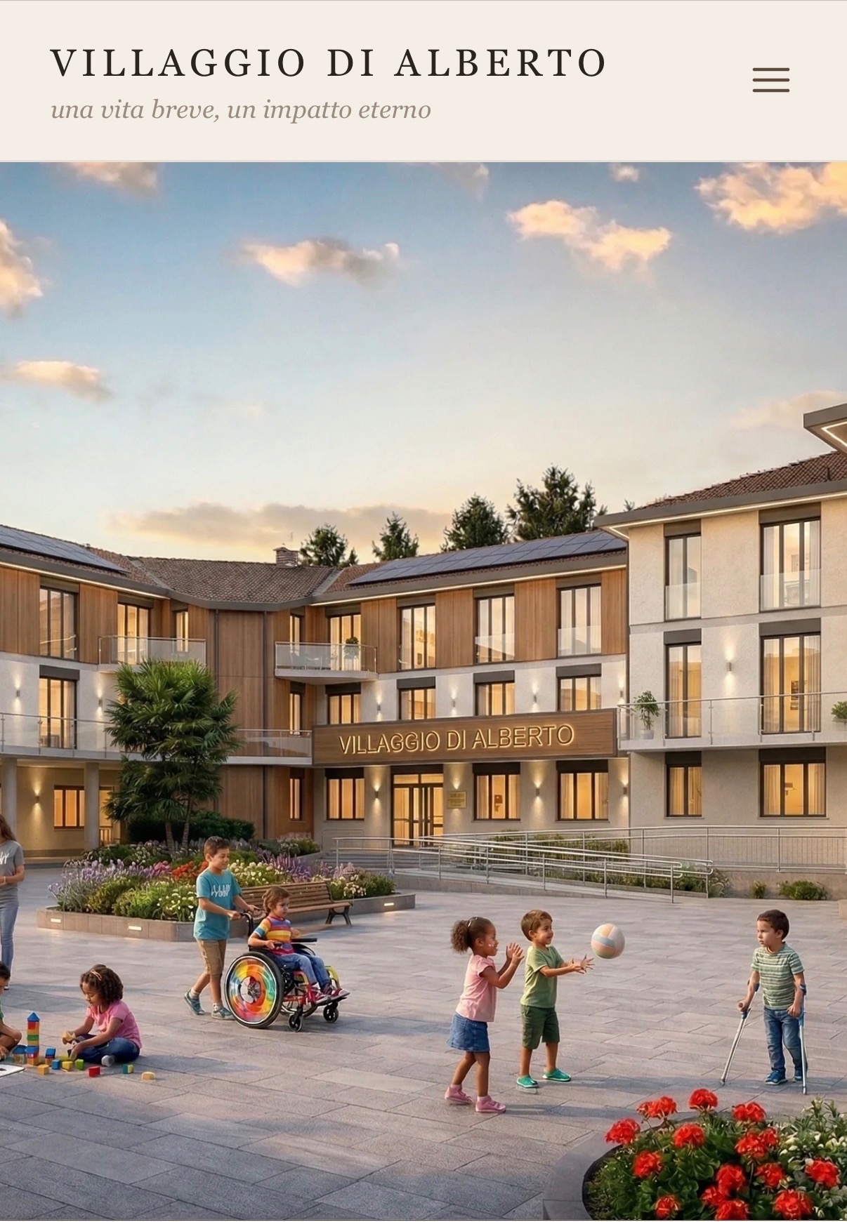 Il Villaggio di Alberto nasce così: dal ricordo vivo di Alberto Lerza, dalla sua luce, dalla sua capacità di lasciare un segno immenso nonostante una vita breve. Non vogliamo che la sua storia resti solo memoria. Vogliamo che diventi casa, accoglienza, cura, futuro. Il sito del progetto lo dice in modo limpido: da una storia vera è nata un’idea di casa, un luogo dove anche una vita breve può generare un impatto eterno.