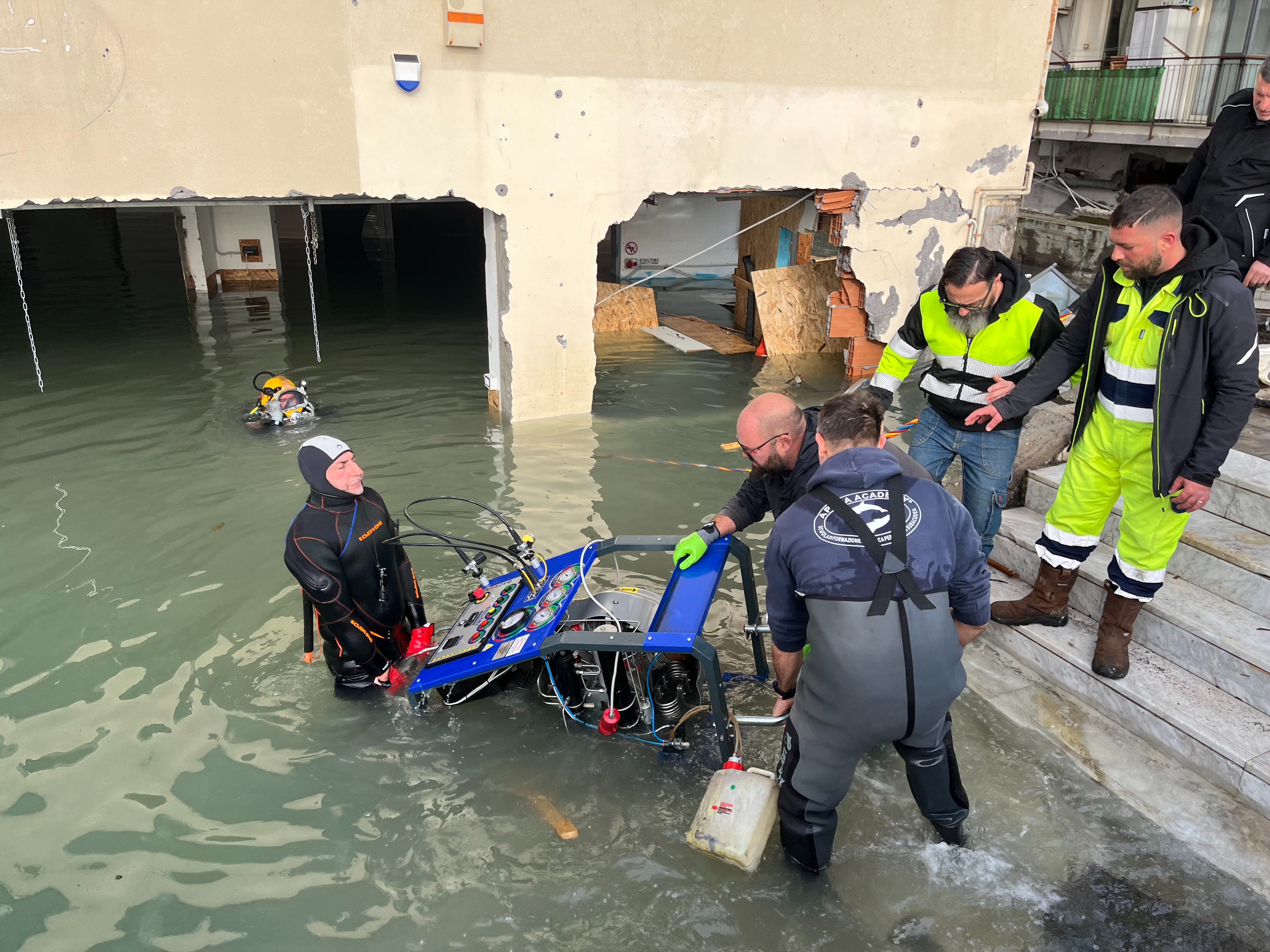 La nostra sede, situata sotto il livello del mare, è stata completamente allagata e resa inagibile. I danni subiti hanno comportato: