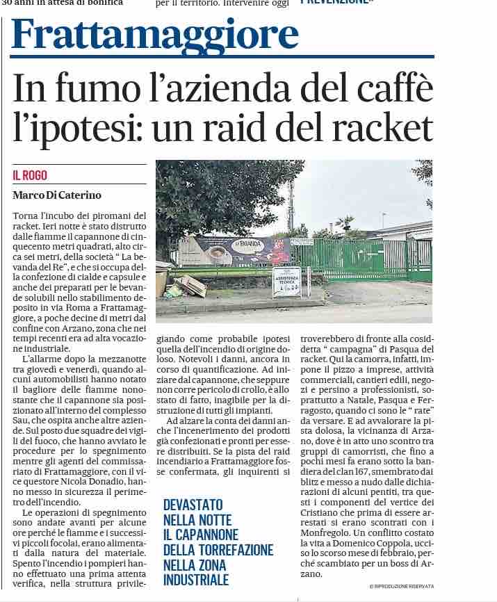 Nella notte la nostra azienda, La Bevanda del Re, è stata colpita da un incendio devastante che ha distrutto tutto.