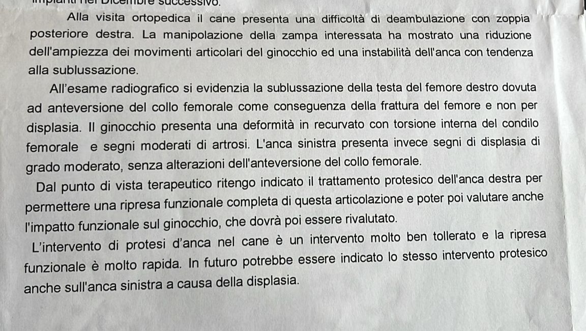 Il dolore che prova è legato alla displasia già diagnosticata da cucciolo, che al tempo abbiamo arginato con piccole operazioni e che ora, essendo peggiorata, richiede interventi più importanti.
