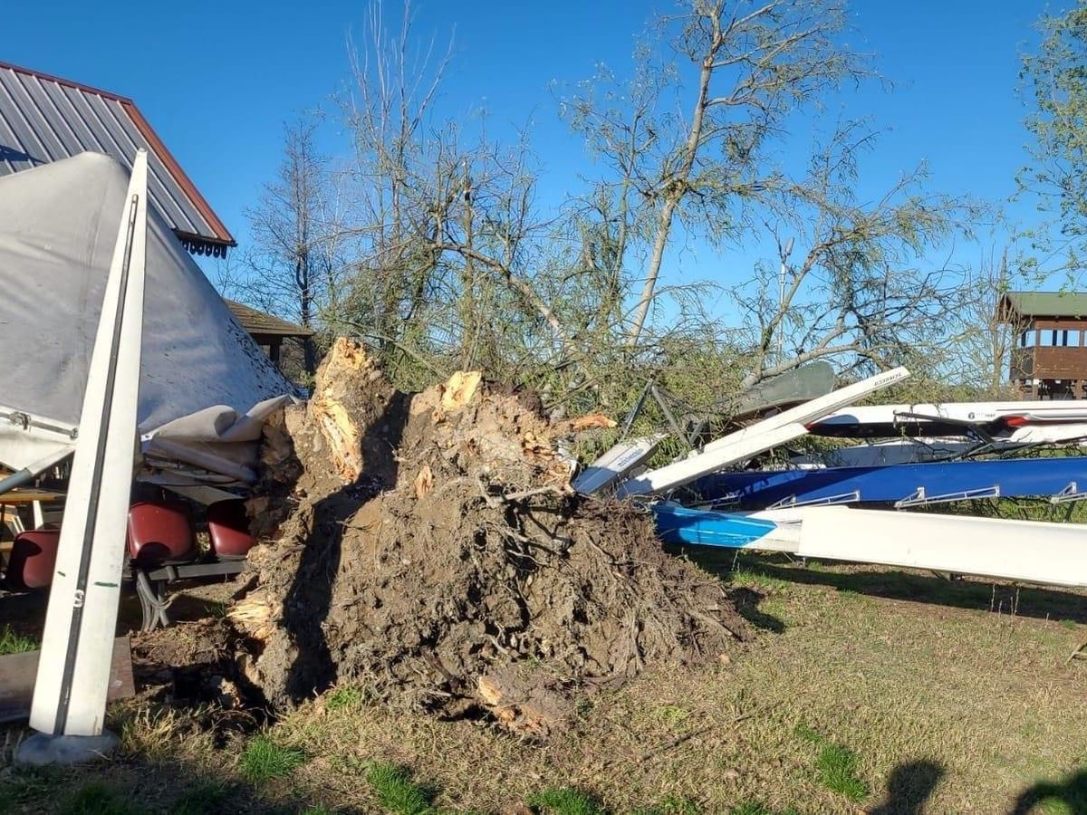 Il forte vento di oggi (27/3/2023) ha abbattuto il grande albero che sorgeva accanto alla canottieri. Cadendo ha distrutto 13 barche di cui n.8 720.
