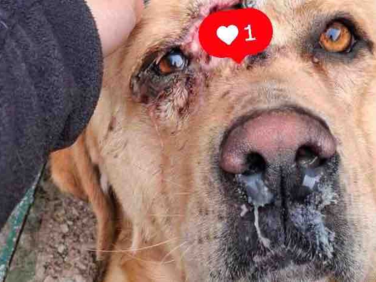 NOI LO CHIAMIAMO IL NOSTRO CANE VIVO PER MIRACOLO....Le ferite da sparo, sono evidenti nel volto e nella orecchie, nel collo e nel torace.