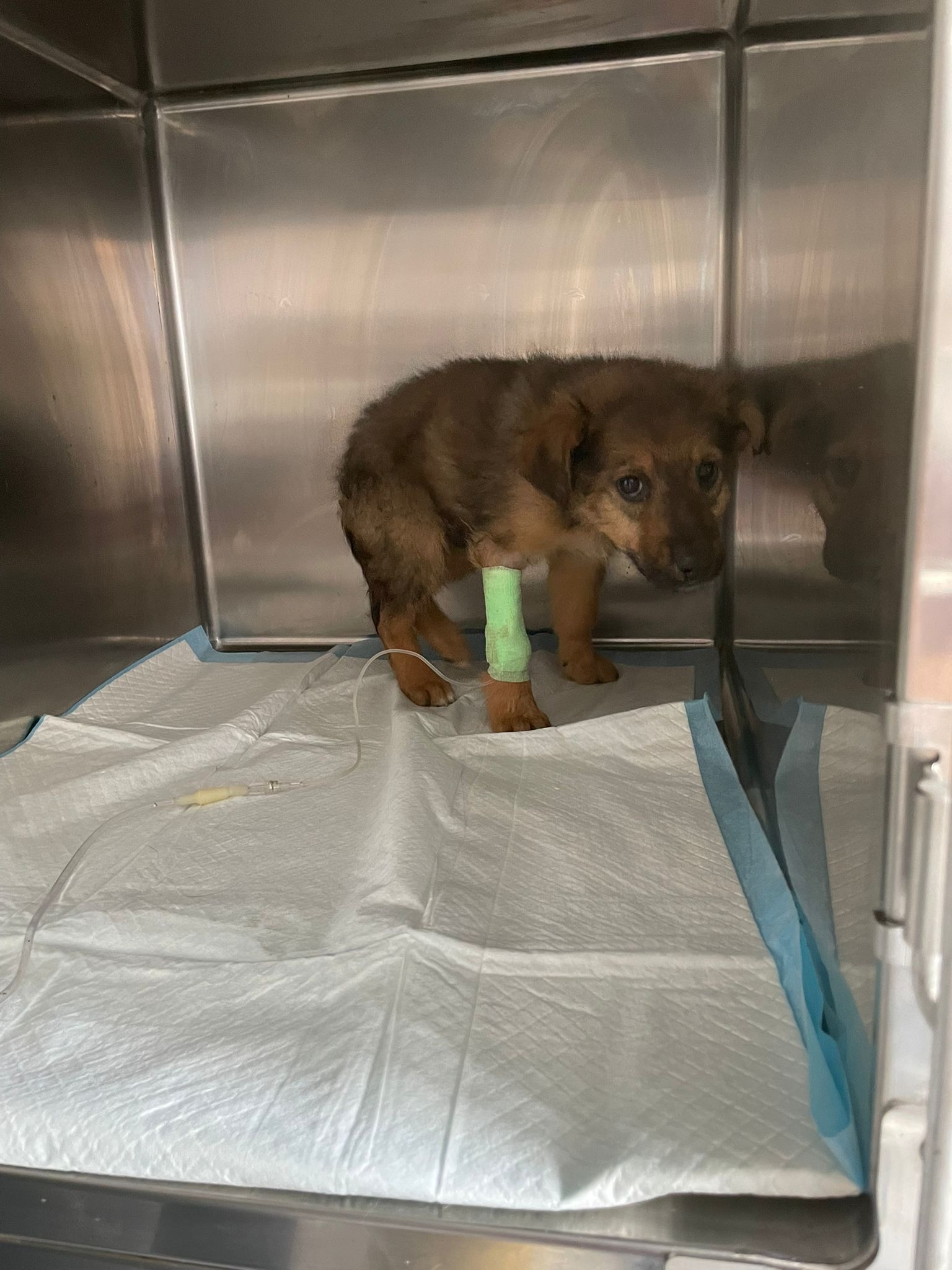 Tino e i suoi fratelli sono stati salvati dalla strada in condizioni critiche: denutriti e parassitati. Nonostante il ricovero immediato, due cuccioli non ce l'hanno fatta. Gli altri, Tino incluso, stanno strenuamente combattendo contro una parvovirosi che si manifesta sempre più forte.