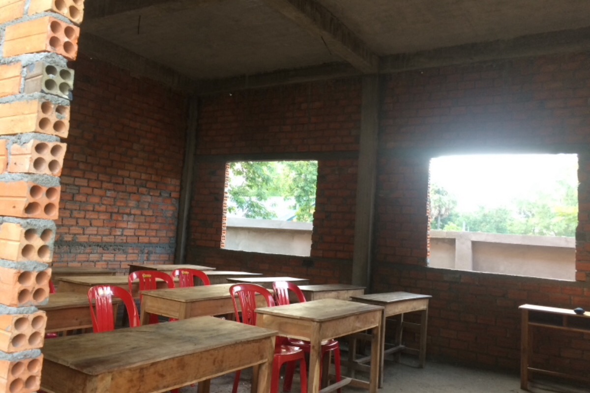 O que me chamou atenção nesse projeto é que tudo é organizado. Essa escola que estou dando aula é na casa do Thea e da Veasna, eles separaram um espaço dentro da própria casa para o início do projeto e também são os professores, eles doaram parte do próprio terreno para a construção da escola. Essa escola começou a funcionar no final do ano passado, já é terceira escola que a ONG está construindo no Camboja, as outras já têm uns dois anos de funcionamento.