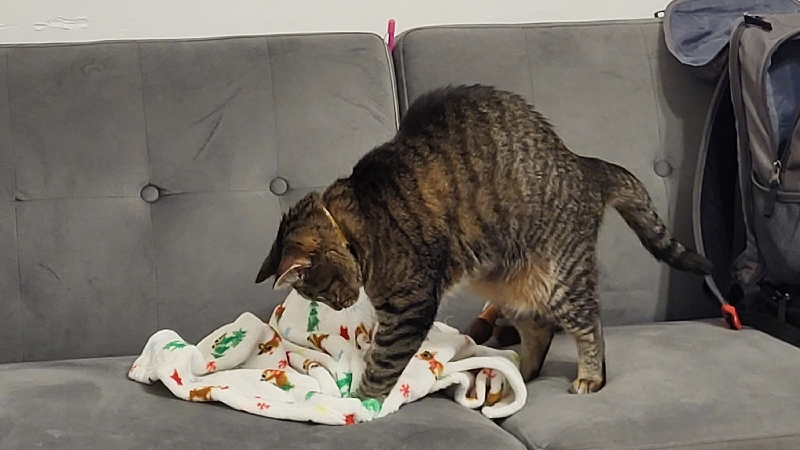 Akira is now two years old, and from the moment she arrived as a tiny kitten, she has filled our home with joy. She loves chasing her toys, leaping into the air to "hunt" us, and curling up by my side every night. Her playful energy and silly antics have made us laugh through some of our toughest days.