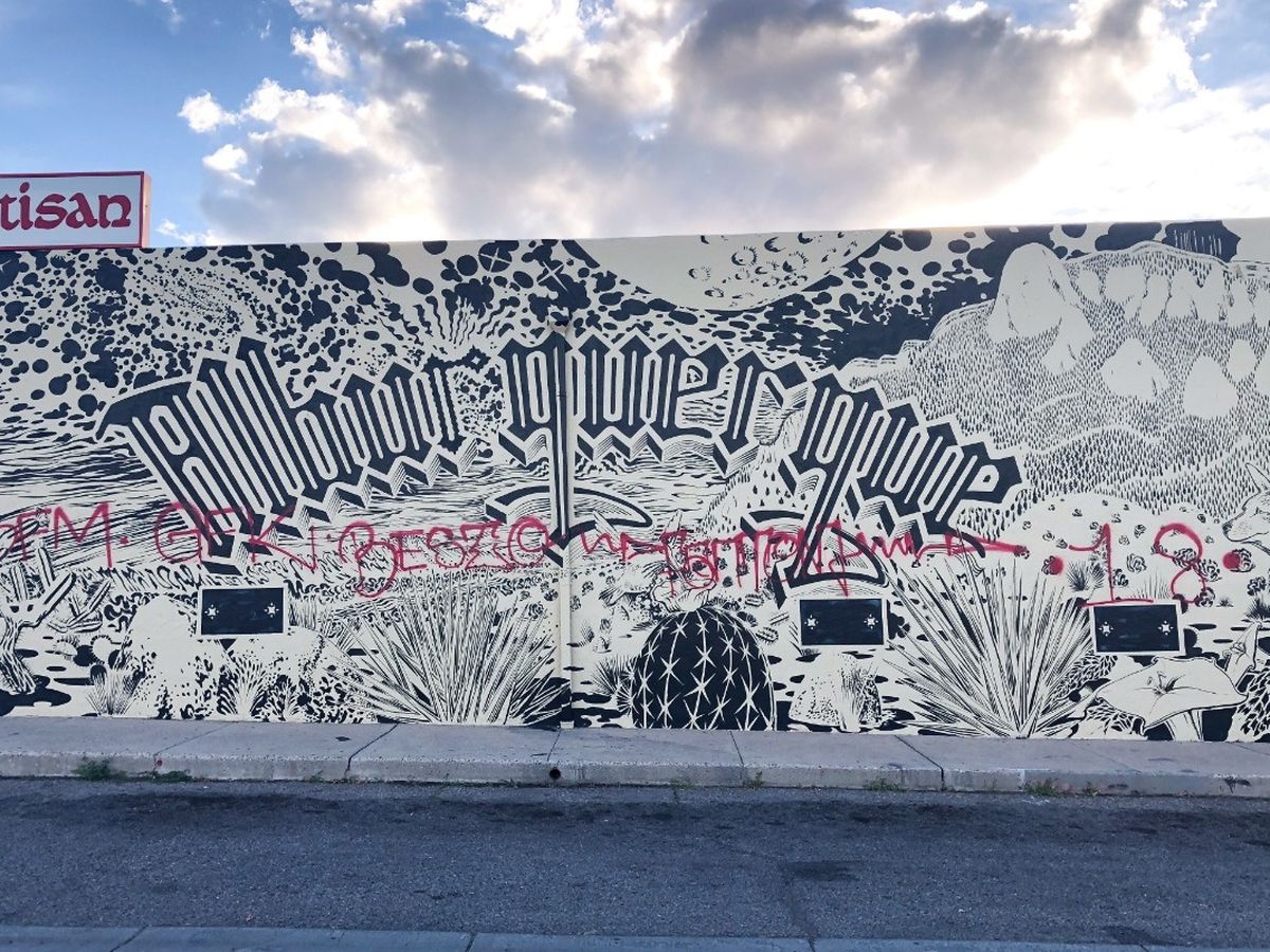 $1500 will cover supplies and a finishing UV protector that will help with preservation against the elements and most importantly, make restoration easier if it were to be vandalized again. We're lucky enough to have Larry Bob in from Roswell as he is working on a different mural, and could begin restoration as soon as the end of the week.