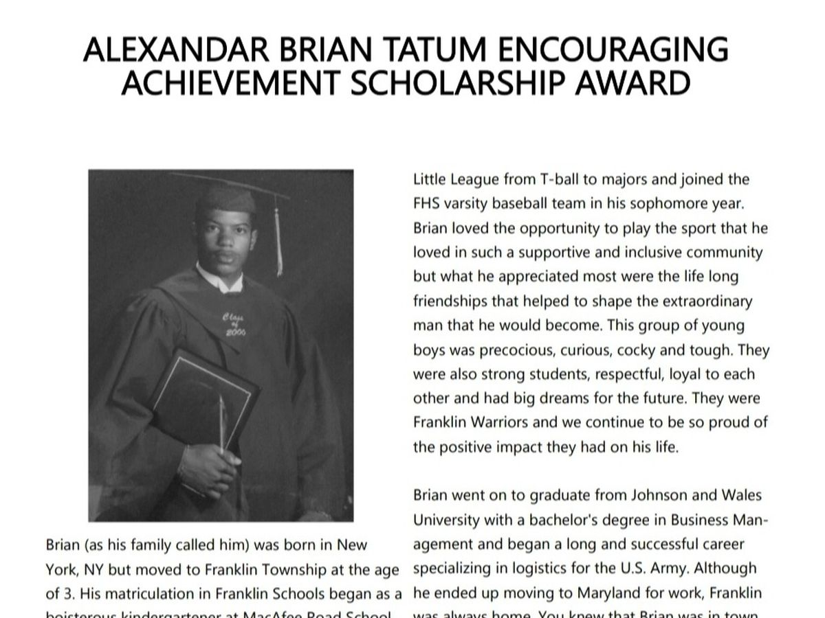 Hey c/o FHS 2000! If you didn't already know, since 2017 the Warrior for Life Scholarship Foundation has issued a scholarship in honor of our classmate Alex Brian Tatum; so far awarding four students from Franklin over $3000 toward their college education!