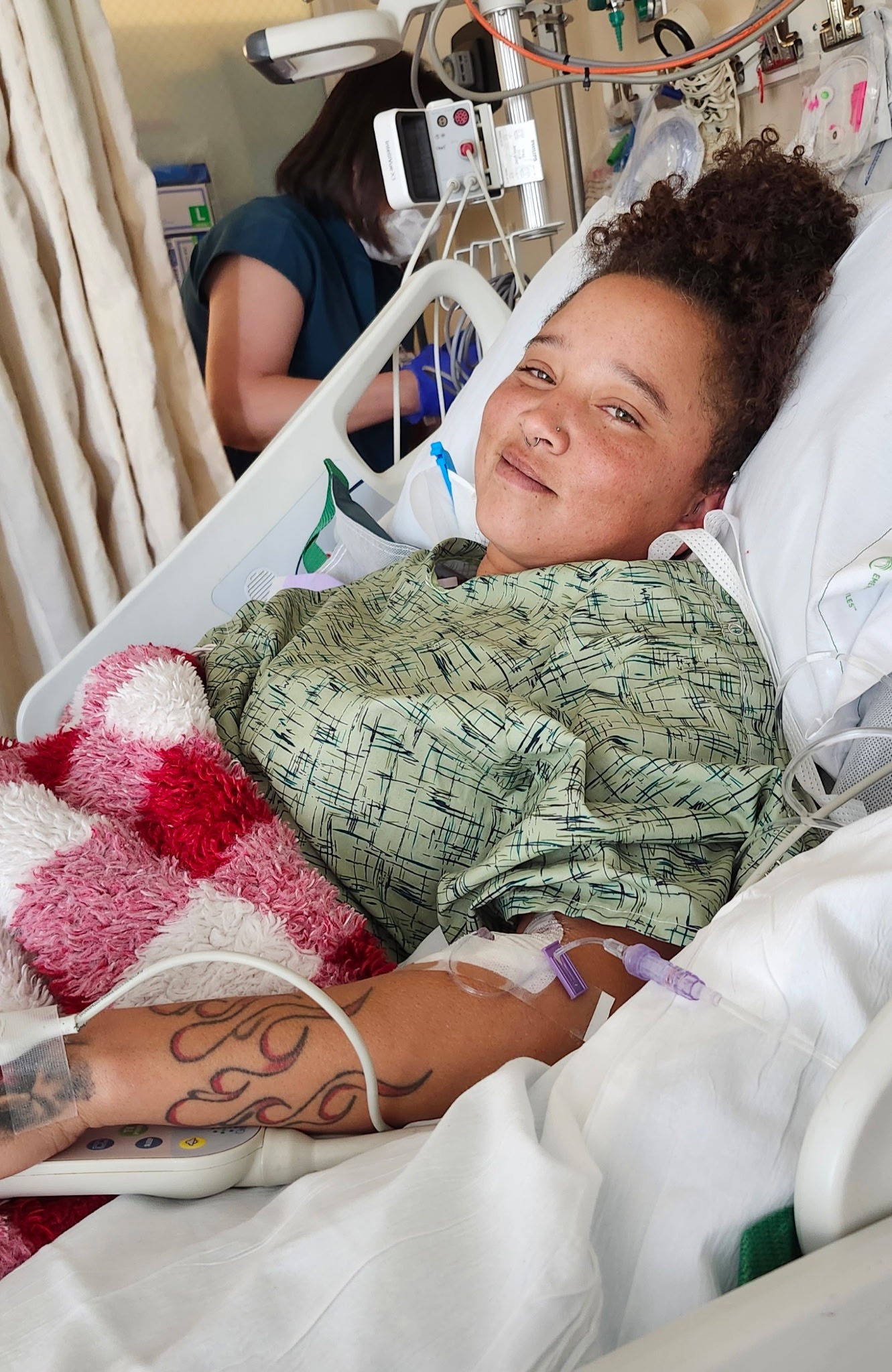Alexis was admitted into Kaiser under the care of a Neurological Specialist on 6/11/2025. On 6/13/2025, the “Endovascular Clipping” method was performed to attempt repair of the three right side aneurysms. The surgeon decided to hold off repairing the two smaller aneurysms and simply monitor them for now. It should be noted that in spite of receiving Tylenol, Oxytocin, and, at times, Dilaudid, Alexis remains in constant pain during this entire procedure.