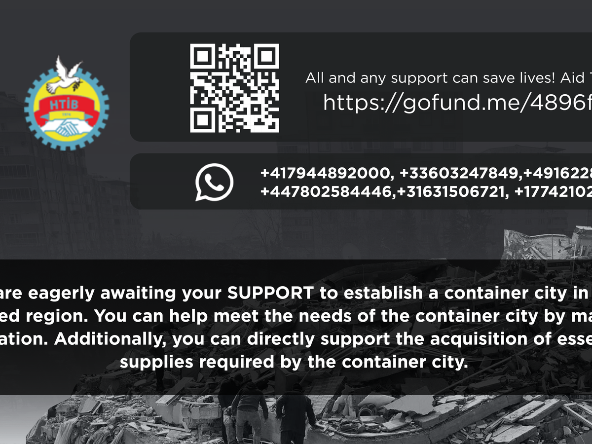 Le TİP Vakfı (Workers' Party of Turkey Foundation) fait appel à la communauté internationale pour un soutien immédiat dans les efforts de reconstruction. La fondation vise à lever des fonds qui seront transférés de manière transparente à des organisations locales et partenaires dans les zones touchées. Les dons aideront à fournir des ressources essentielles pour construire des villes en containers, telles que des containers, des générateurs, des toilettes portables, des tentes, des chauffages, ainsi que des besoins immédiats tels que des produits d'hygiène et de la nourriture.