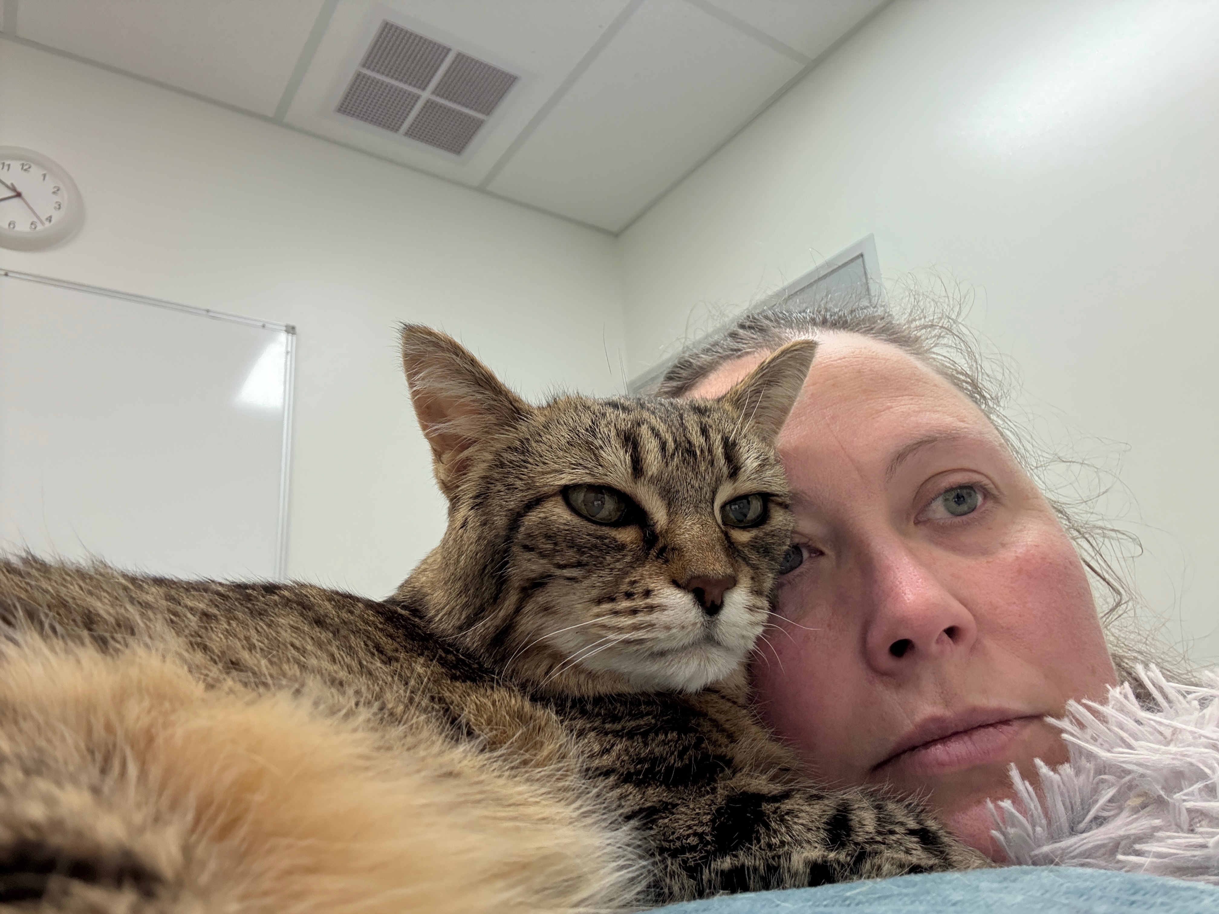 All three of us are high needs. I have four severe illnesses, am on a pension and work sporadically. Pocket is 17yrs, has inflammatory bowel disease , arthritis and just drained my savings with a bout of pancreatitis that I thought was going to result in her death. BC has Feline Immunodeficiency Virus , feline hyperesthesia syndrome and shotgun pellets lodged under the skin of his back.
