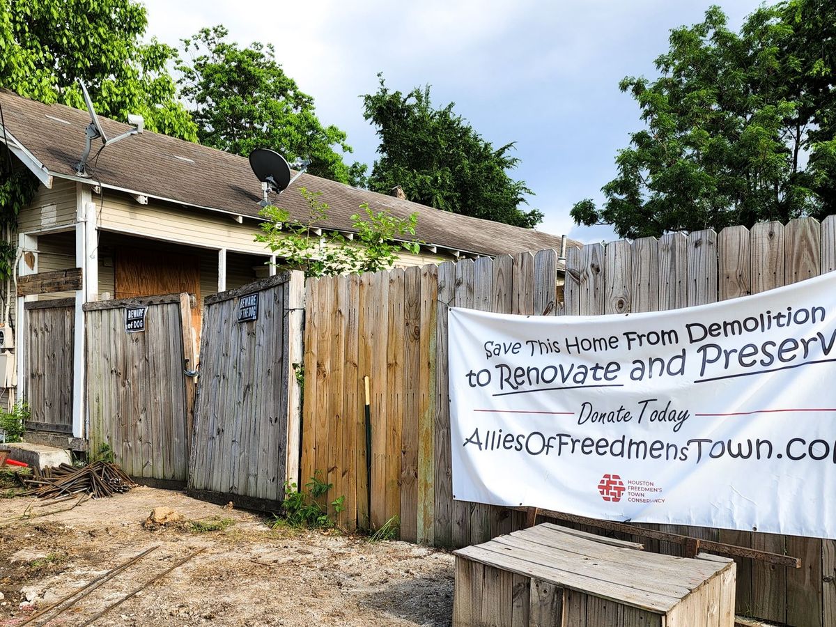 The Houston Freedmen's Town Conservancy (HFTC) is raising money to pay for the purchase and historic restoration of 1609 Saulnier. In December 2022, HFTC saved the original contributing structure from demolition by acquiring it via borrowed funds and is now seeking donations to pay back the borrowed money and help fund the home’s renovation. Freedmen’s Town is an important cultural touchstone in both African American and Texas history. 1609 Saulnier is listed in the inventory of the United States Department of Interior - National Park Service, National Register of Historic Places in the Freedmen’s Town Historic District.