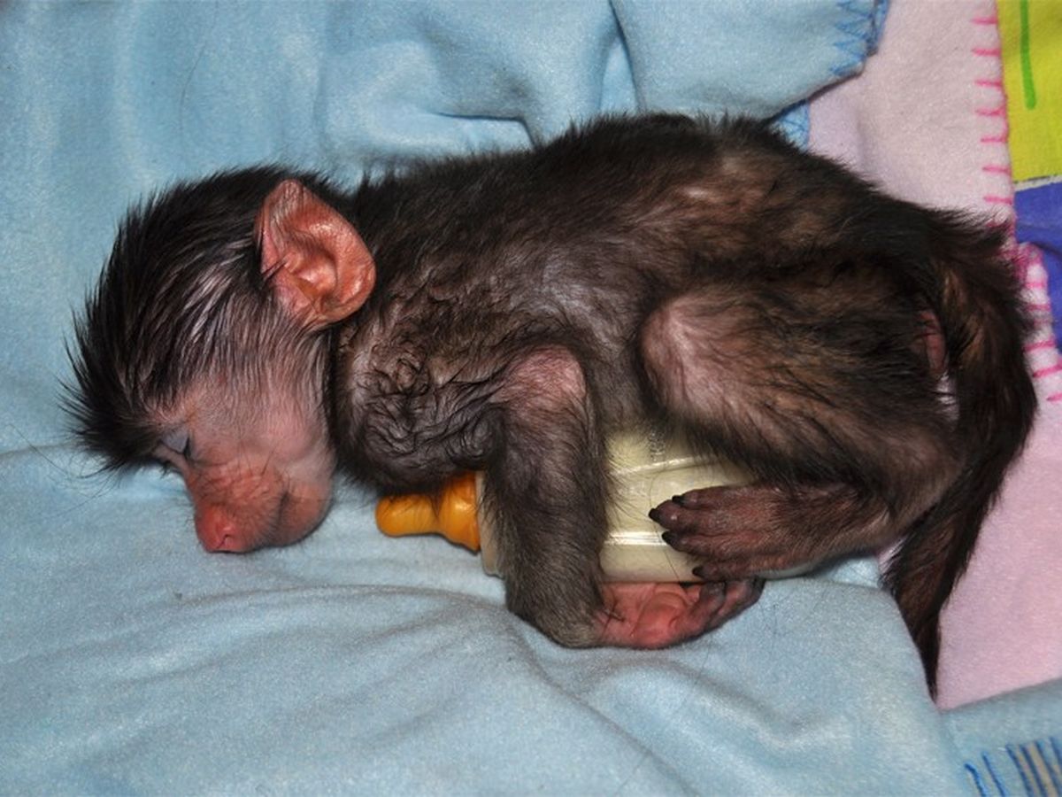 Above: Orphan Karien when she first arrived at C.A.R.E. Karien was named after Karien Heilberg, a talented artist that died in 2011. Karien used to support C.A.R.E. though her beautiful sketches of baboons.