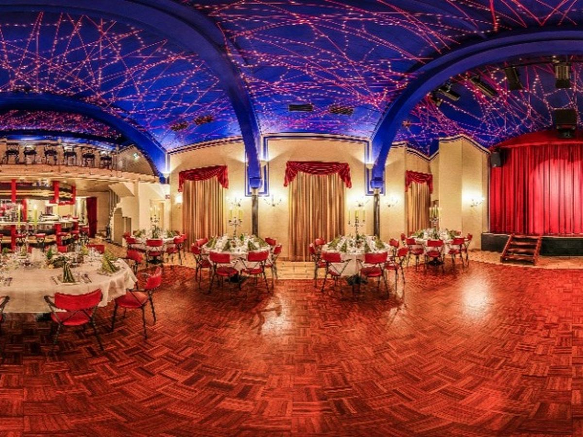In unserem Theatersaal mit Rundbögen, Säulen, Empore und Sternenhimmel können bis zu 199 Personen Kunst & Kultur genießen, sowie Hochzeiten, Geburtstage und Firmenfeste gefeiert werden.