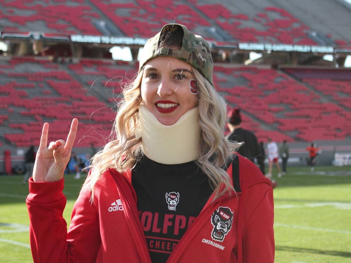 I decided to go back to school for Electrical Engineering when I was 21 and got a wild hair, and decided I wanted to attempt to cheer again. I was lucky enough to cheer in college; I traveled to other places, such as Boston College and Notre Dame. I wouldn’t trade this experience for the world. While captain, I was fortunate enough to win NCA Nationals in 2018 in Daytona Beach, FL. Winning nationals with my team is one of my most proud accomplishments in cheerleading. That year I was awarded MVP; the following year, I received the most dedicated award. I was a member of the NCA staff from 2017 until I could not participate in 2021; I had the opportunity to travel the Southeast region teaching athletes different skills ranging from the high school level to college. I met so many talented people along the way.