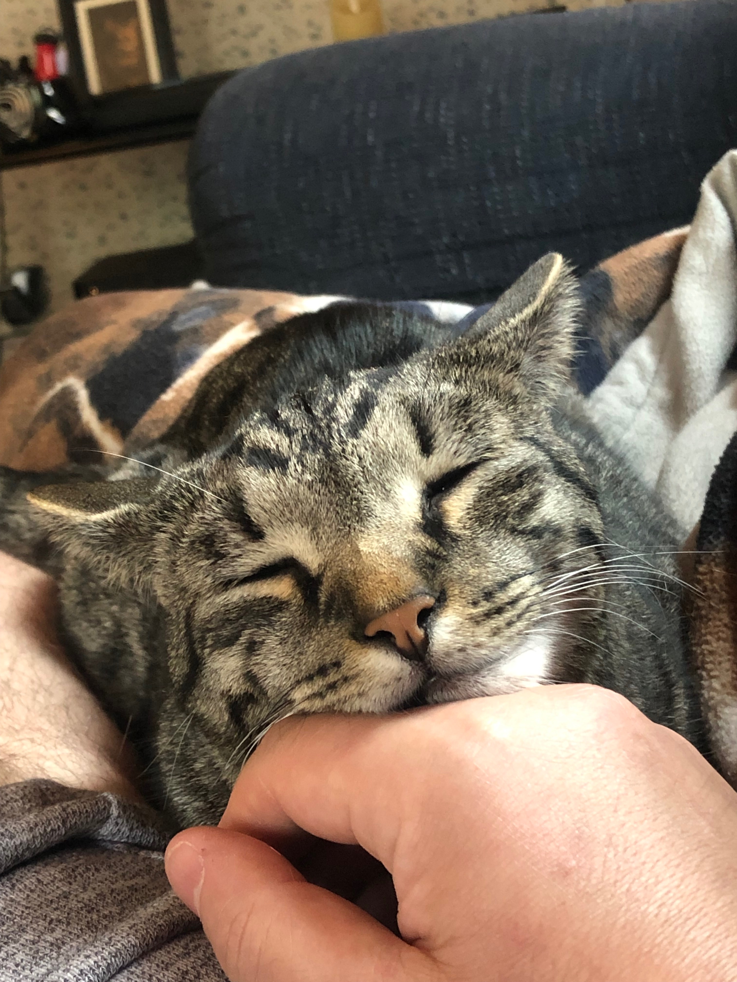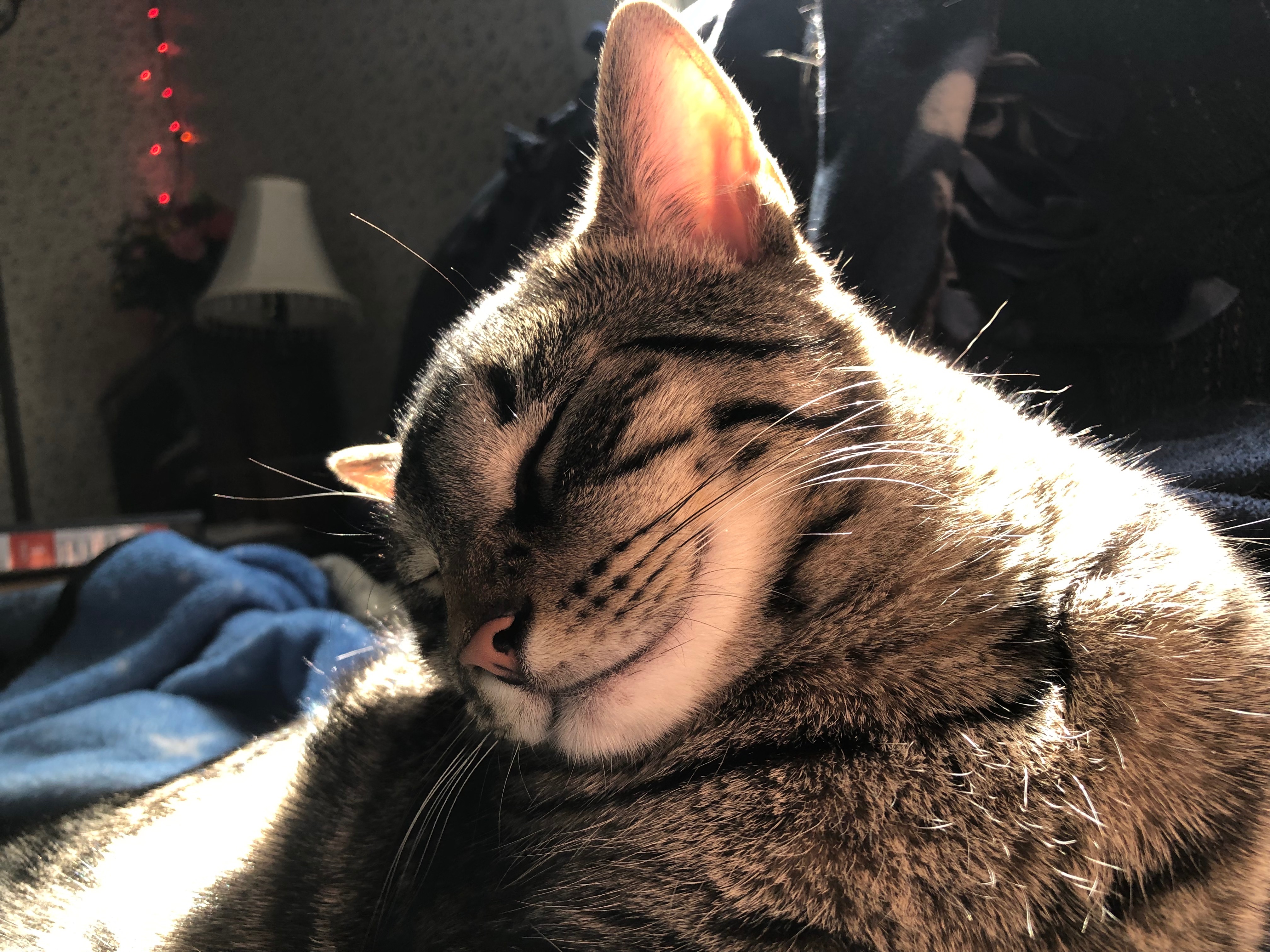 Yoda is a miracle kitty. He was born in a garage in the middle of winter in 2022. Yoda’s mom was discovered giving birth to a litter of kittens in my brother-in-law’s garage in the middle of winter of 2022. My sister being a vet tech new what to do and brought the litter and mom inside. Yoda was one of two kittens that basically had to be ‘brought back to life’ from an unresponsive frozen state. The kittens survived and beat the odds. After months of being taken care of by my niece and sister’s family, Yoda, along with Chewbacca (another boy from the same litter) came home with me and my mother.