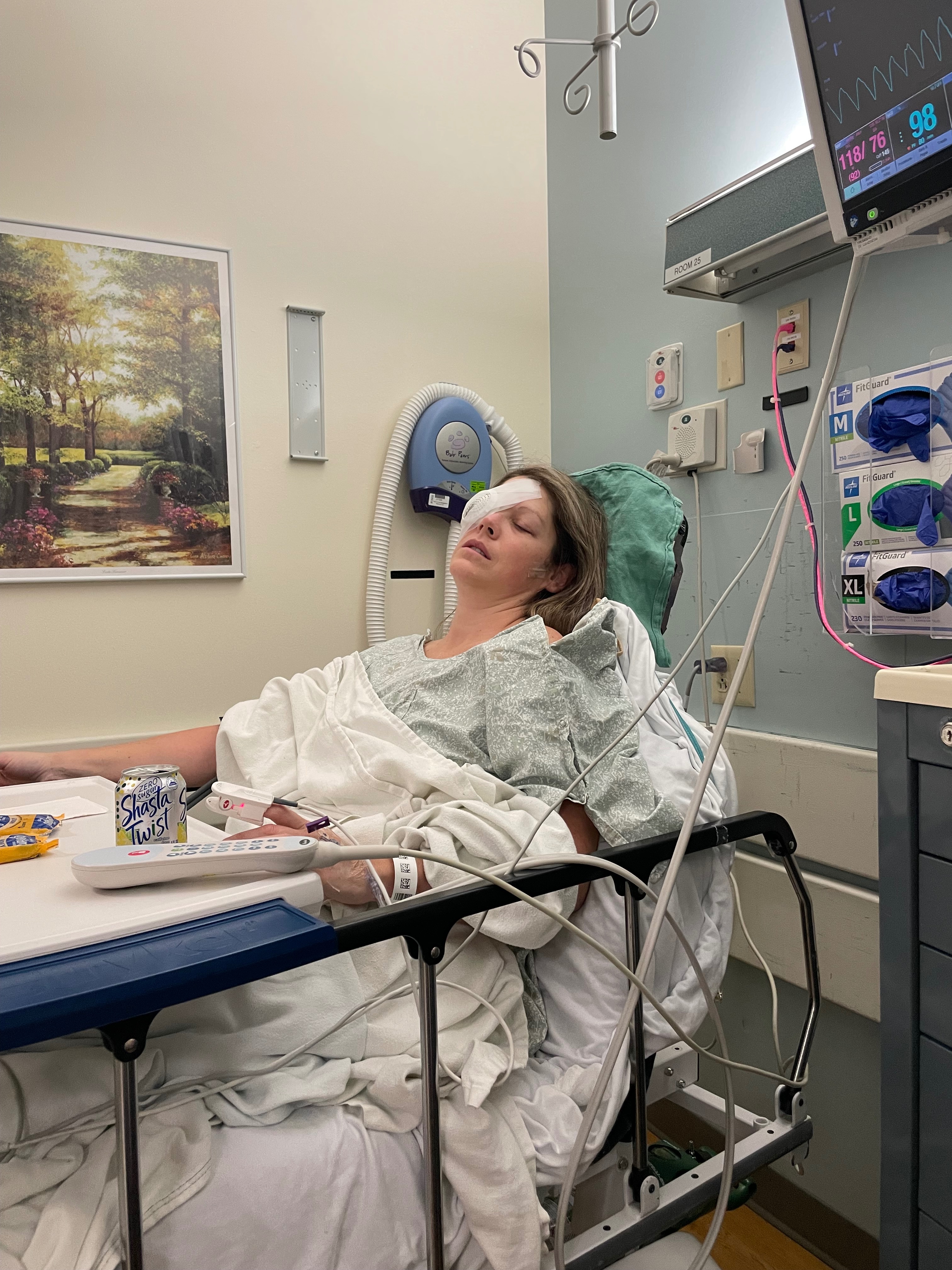 Amanda was diagnosed with cancer in her right eye. She has made multiple trips there until surgery was scheduled. Since then, she went to Dermatology. She has 12 spots of pre-melanoma. They only biopsy 3 at a time, then surgery 1 a week. Then we start over until all 12 have been removed. We are currently working on number 5.