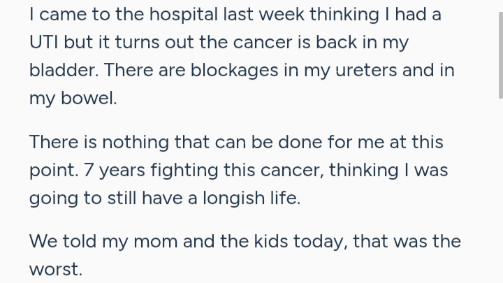 I am creating this fundraiser to help out my best friend of over 30 years. She was diagnosed with esophageal cancer in 2017 and has been fighting ever since. The cancer had already spread to her stomach and now it is in her bladder. There is nothing else left to do. She entered hospice yesterday. They are giving her 6 weeks before her long fight is over. She is only 53. She doesn't know how to handle this. Esophageal cancer has no cure. I am hoping to raise money to help with her bills and for groceries. Her husband was laid off last year and has not been able to find work. He has been taking care of Amber and I am so grateful. Please donate anything that you can. If you are not in a place to donate, please share far and wide. Thank you so much.