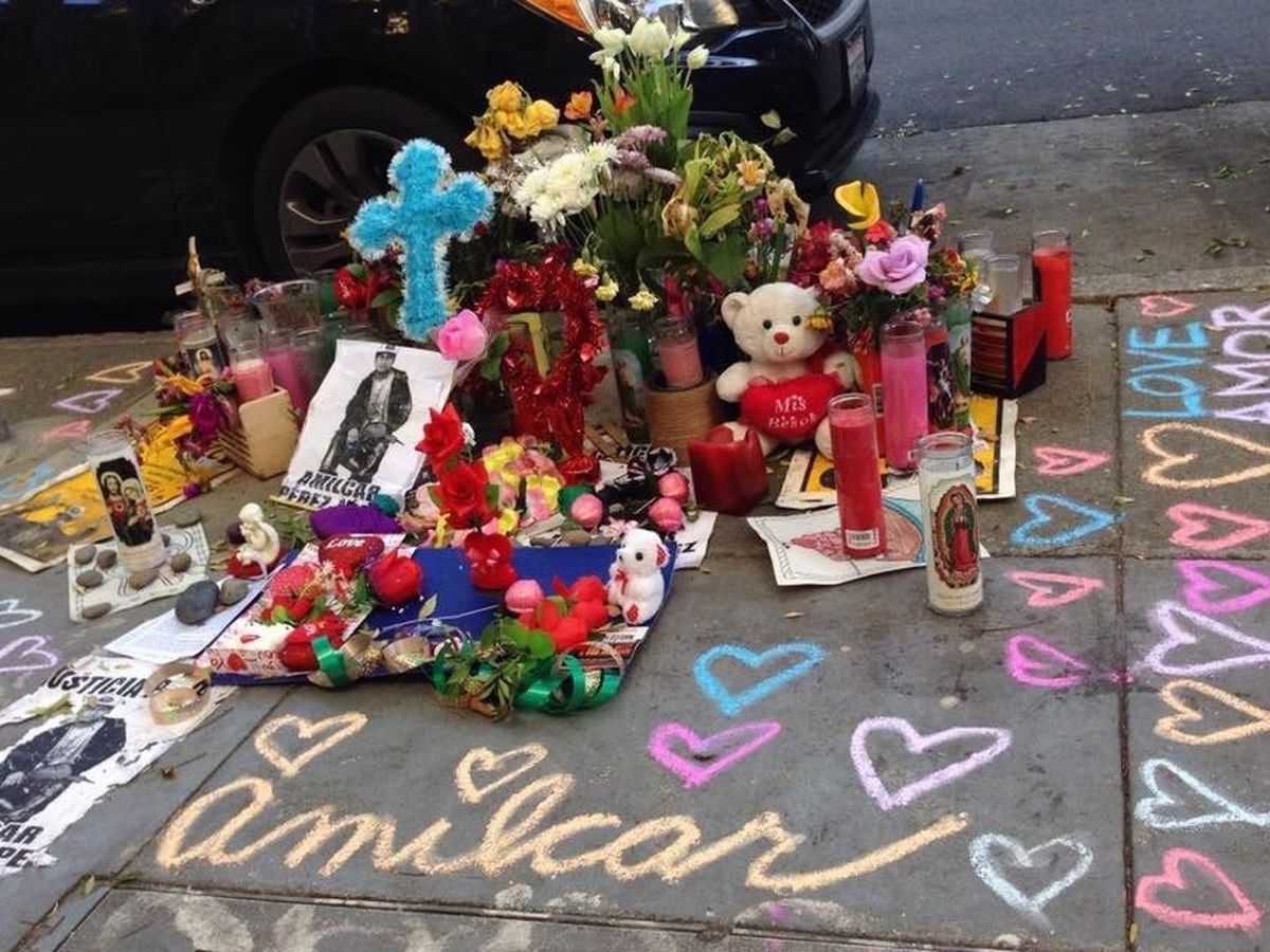 On February 26, 2015, two San Francisco police officers fired six bullets to the back of 21-year-old Amilcar Perez Lopez when he was running for his life, leaving him in a pool of blood on Folsom Street. Despite the subsequent failure of our legal system to hold the officers accountable for his murder, this mural honors this brave young Guatemalan immigrant, his grieving family in Guatemala, and this Mission community that refuses to forget him.