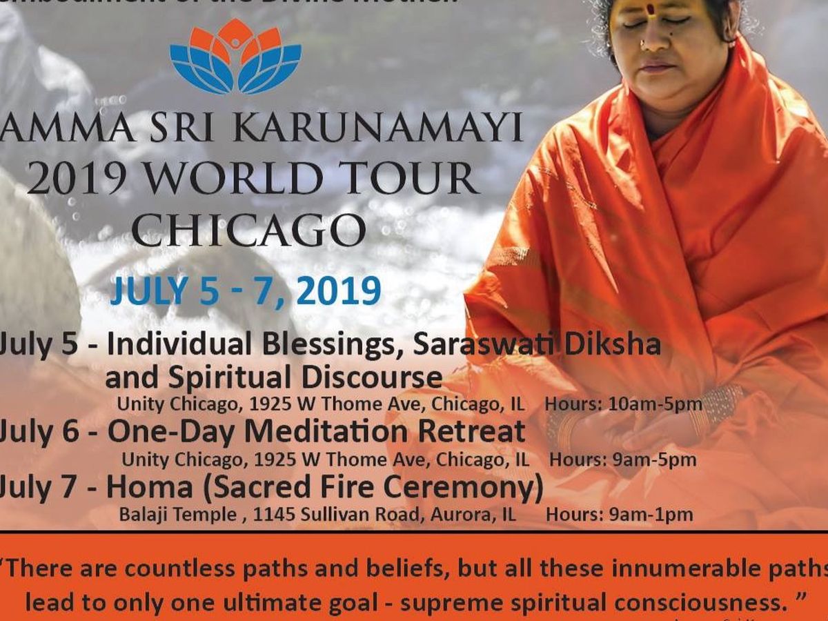 Amma Sri Karunamayi will be Visiting Chicago for Three Days of Programsfrom July 5th -July 7th, 2019!