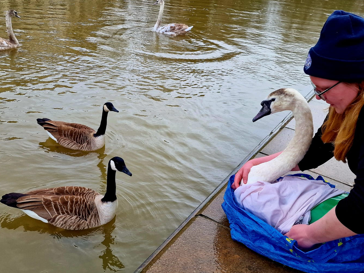 Some examples of rescues we attend include but are not limited to: removing fishing hooks and line from swans, assisting crash landed cygnets from roads, aiding swans trapped in boat locks and canal overflows, helping swans injured in animal attacks, as well as regular feeding/welfare checking to quickly identify changes and concerns.