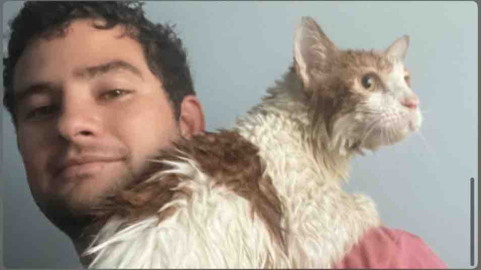 Mike braved the storm to save a cat, who we named Ian, that was stranded clinging for life on a neighbor’s AC unit as storm surge rushed in.