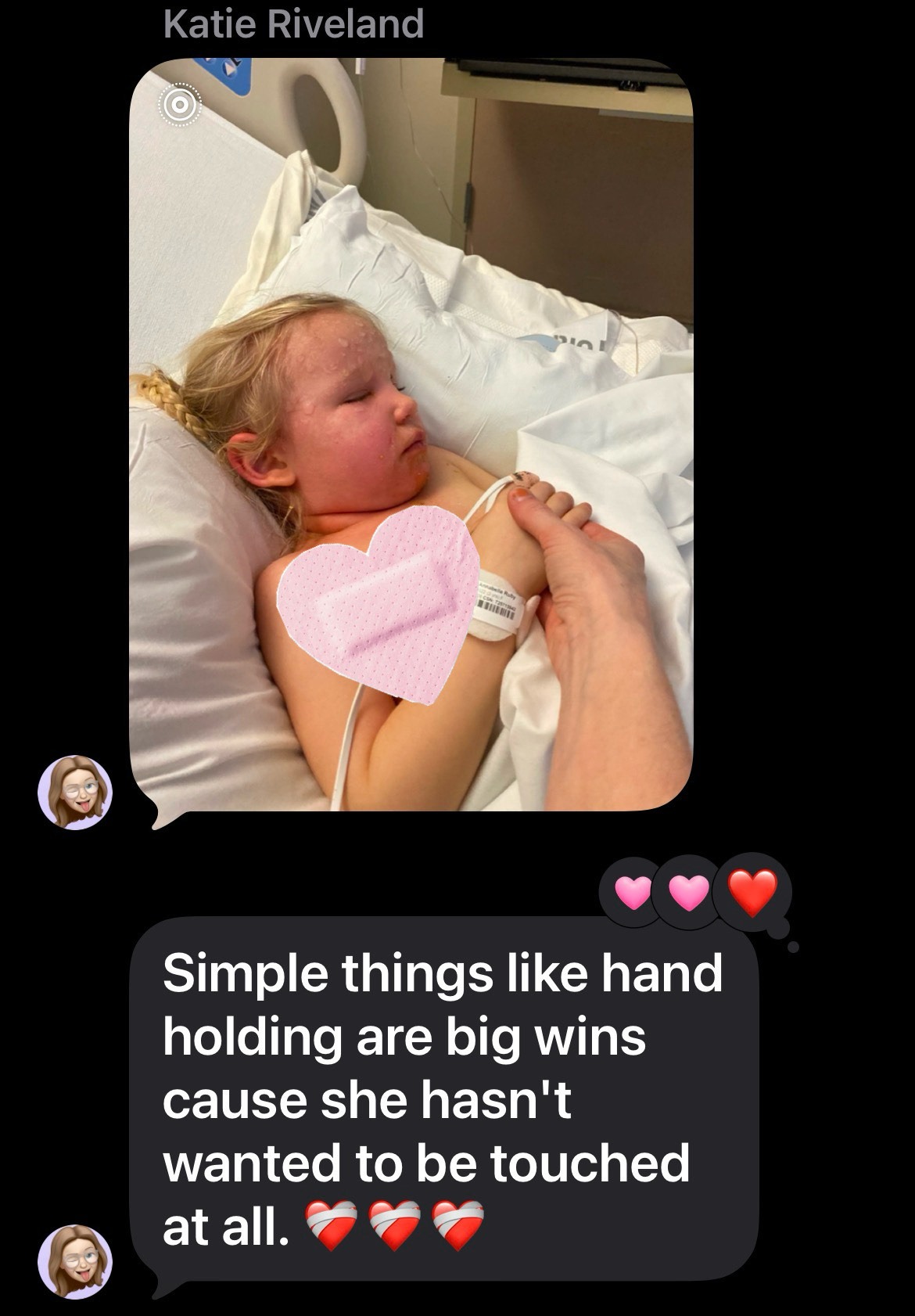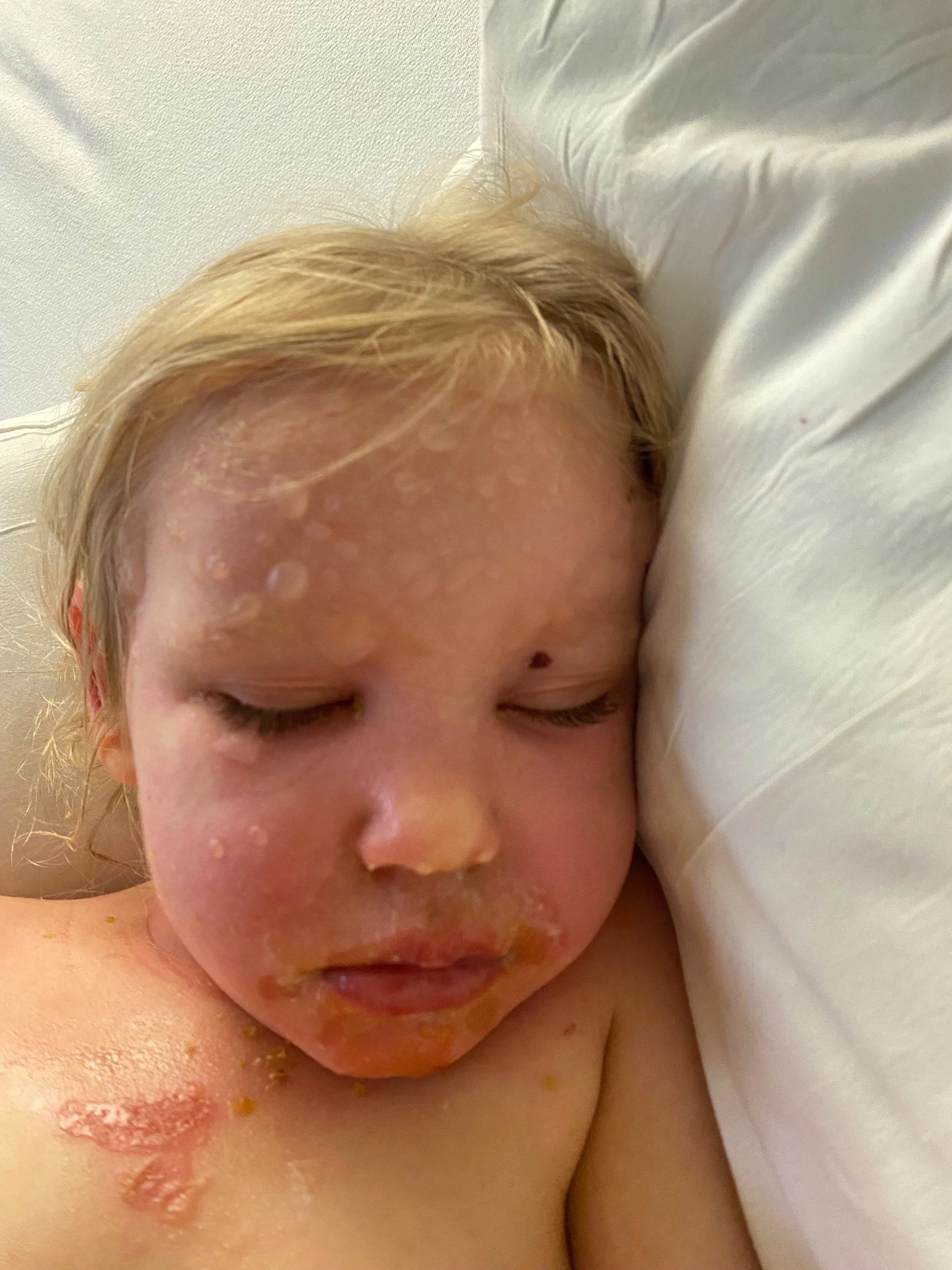 I hope to add updates as progress is made, it's so hard to watch through photos as her sensitive skin appears to get worse with the appearance of more and more blisters before it gets better as the medication helps her rest and recover. I can't imagine the sadness and distress her family feels right there in the room.