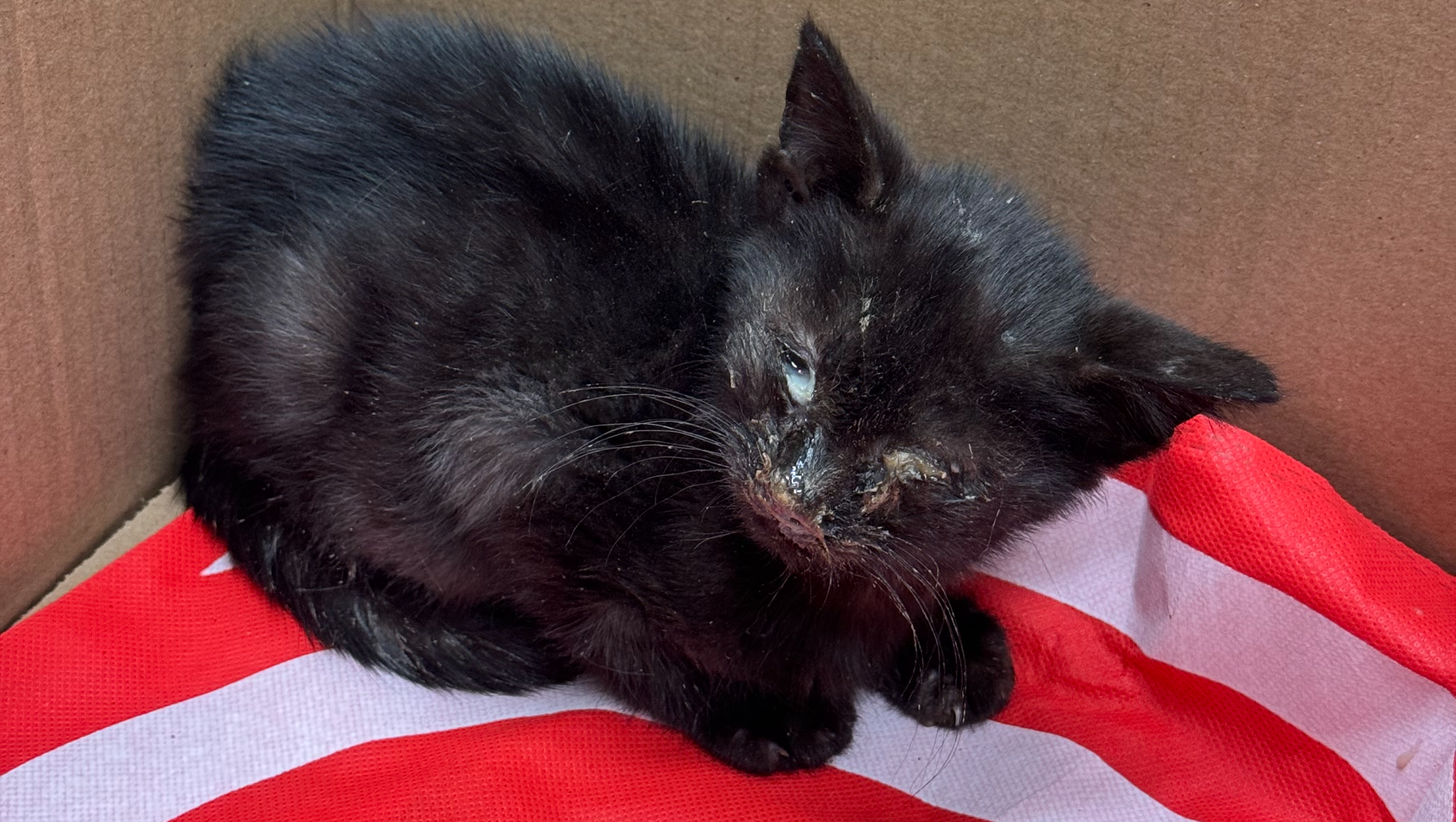 We were contacted about a tiny 3-month-old kitten, barely clinging to life. He was found lying in the grass by the side of the road, too weak to even lift his head. It’s a heartbreaking sight, and it’s clear he needs emergency hospital care immediately. But right now, with so many urgent cases already under our care, it’s incredibly difficult for us to take on another emergency without your help. If you can, please donate, even a few dollars, to help us save this innocent life. Every second matters. Every dollar counts.