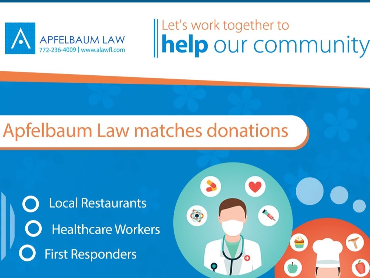 So, we came up with a plan to help! Apfelbaum Law will be collecting donations to purchase food from restaurants located in St. Lucie and Martin Counties, and we will be donating this food to our healthcare workers and first responders so that we can give back to both groups at the same time.