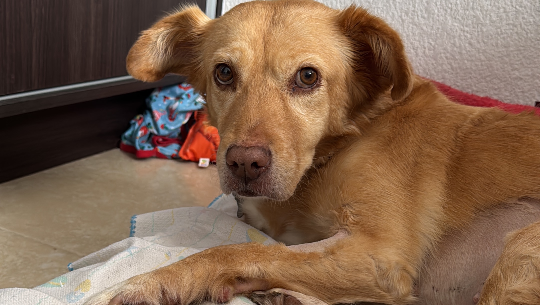 Güera ha pasado anteriormente ya por dos cirugías, la primera su esterilización derivado de una piometra y la segunda por un ovario remanente. A lo largo de su vida he podido hacerme cargo de su salud sin problemas.