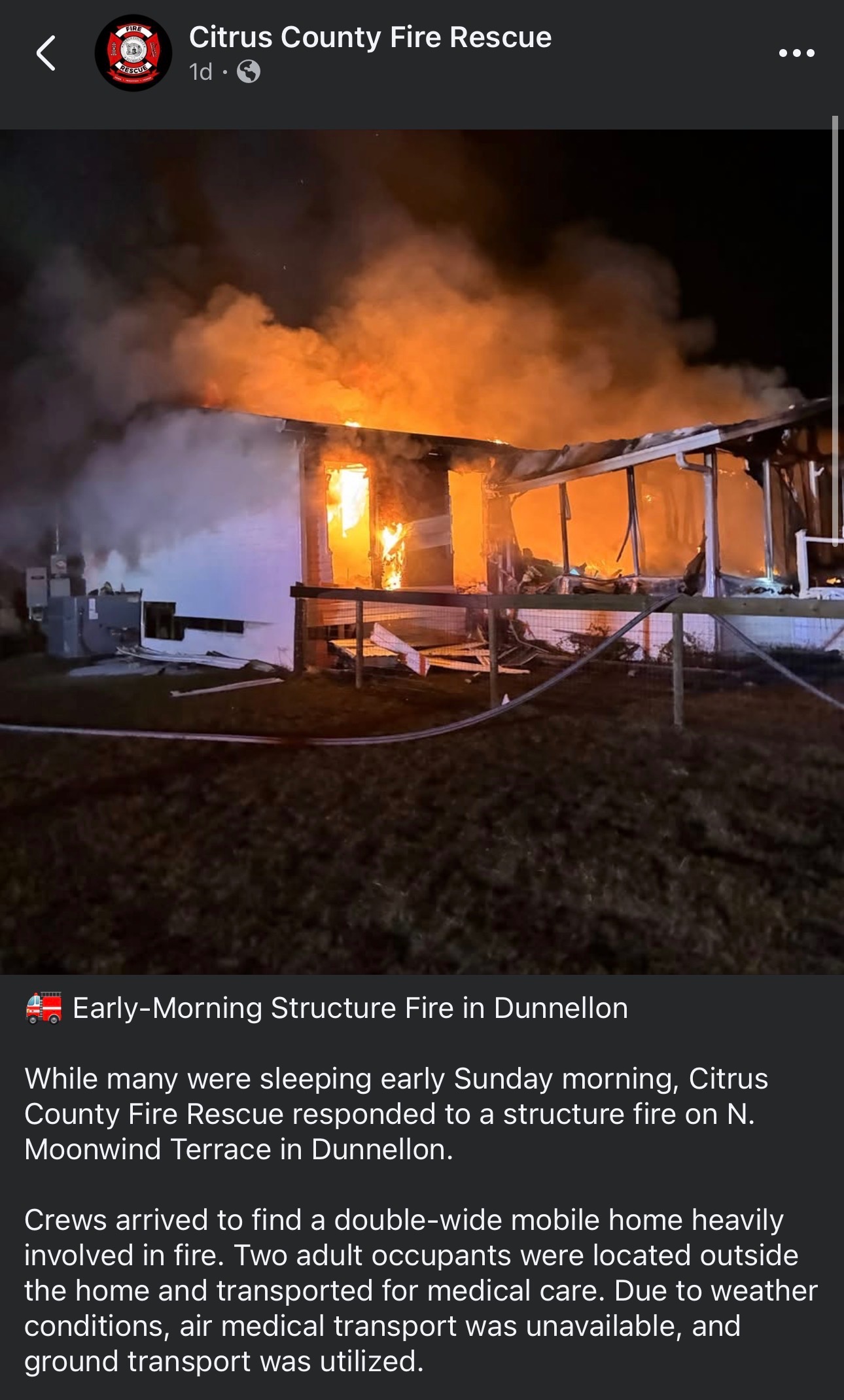 In a matter of moments, Steven and Virginia lost not only their home and all of their belongings, but Steven also lost his life, and Virginia now faces a long and uncertain road to recovery. She remains hospitalized, receiving intensive care as doctors work to stabilize her condition.
