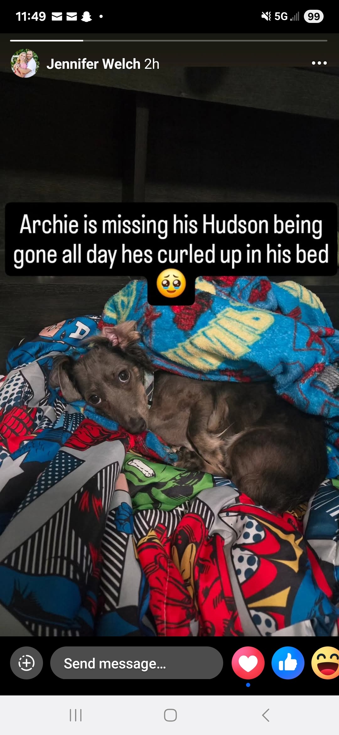 Archie is a beautiful miniature dachshund who is about 17 months old and like most pups his age he's silly, loving and super playful with his human siblings. He is the perfect addition to their beautiful crazy family.