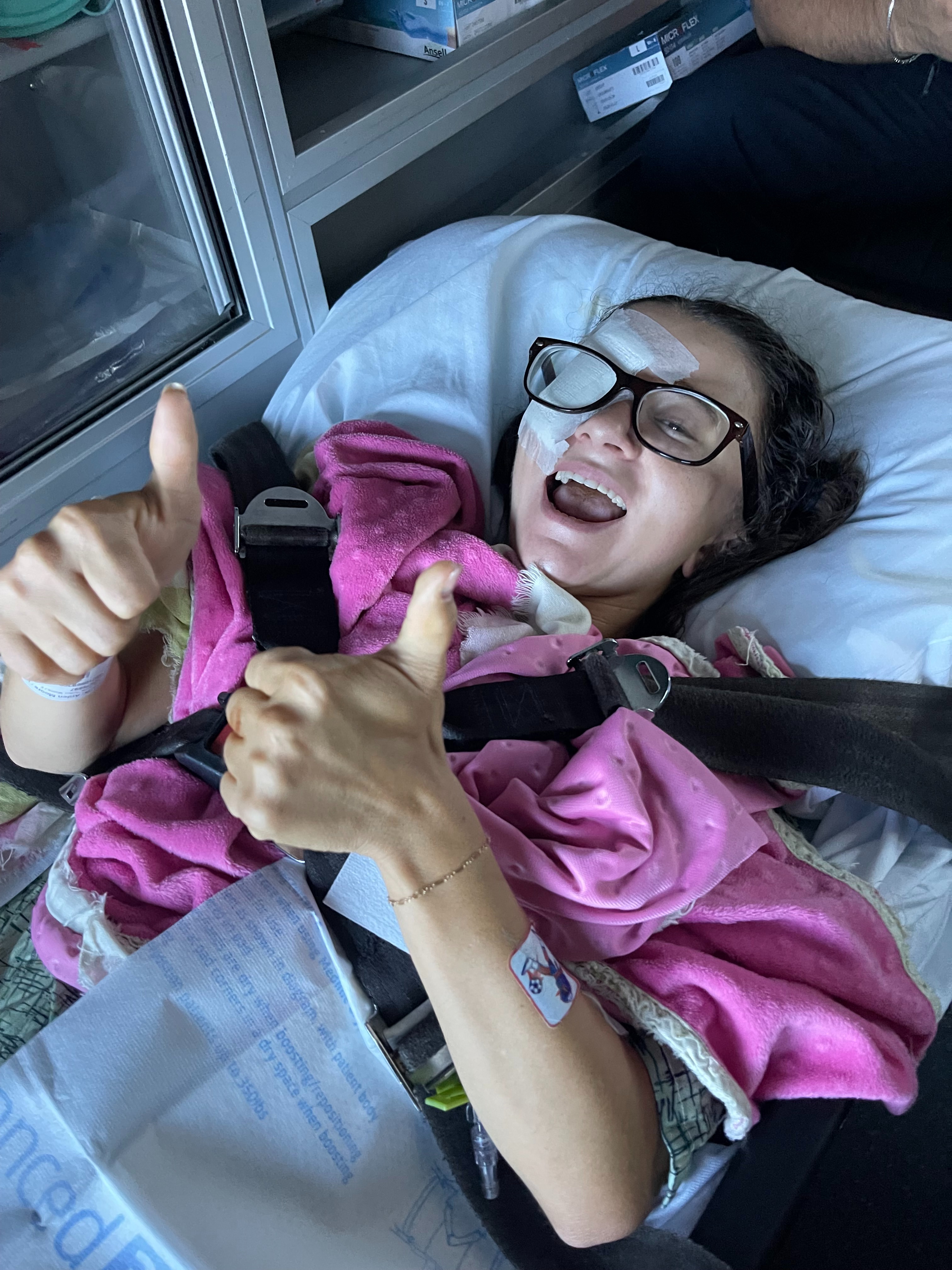 The accident’s impact on Arden’s body was extreme. She sustained numerous fractures, including a skull fracture, her cervical bone, clavicle, scapula, multiple ribs and her sternum. She has broken every vertebrae from T4 - S1. Right now L5 and S1 are pressing on her spinal cord and will need to be surgically stabilized. Arden is also suffering the impacts of a traumatic brain injury, doing her best to manage severe headaches, and vision problems as a result of a severe concussion. Compounding these injuries, doctors are concerned about fluid in her lungs, which were punctured in the crash, and she is being treated for pneumonia.