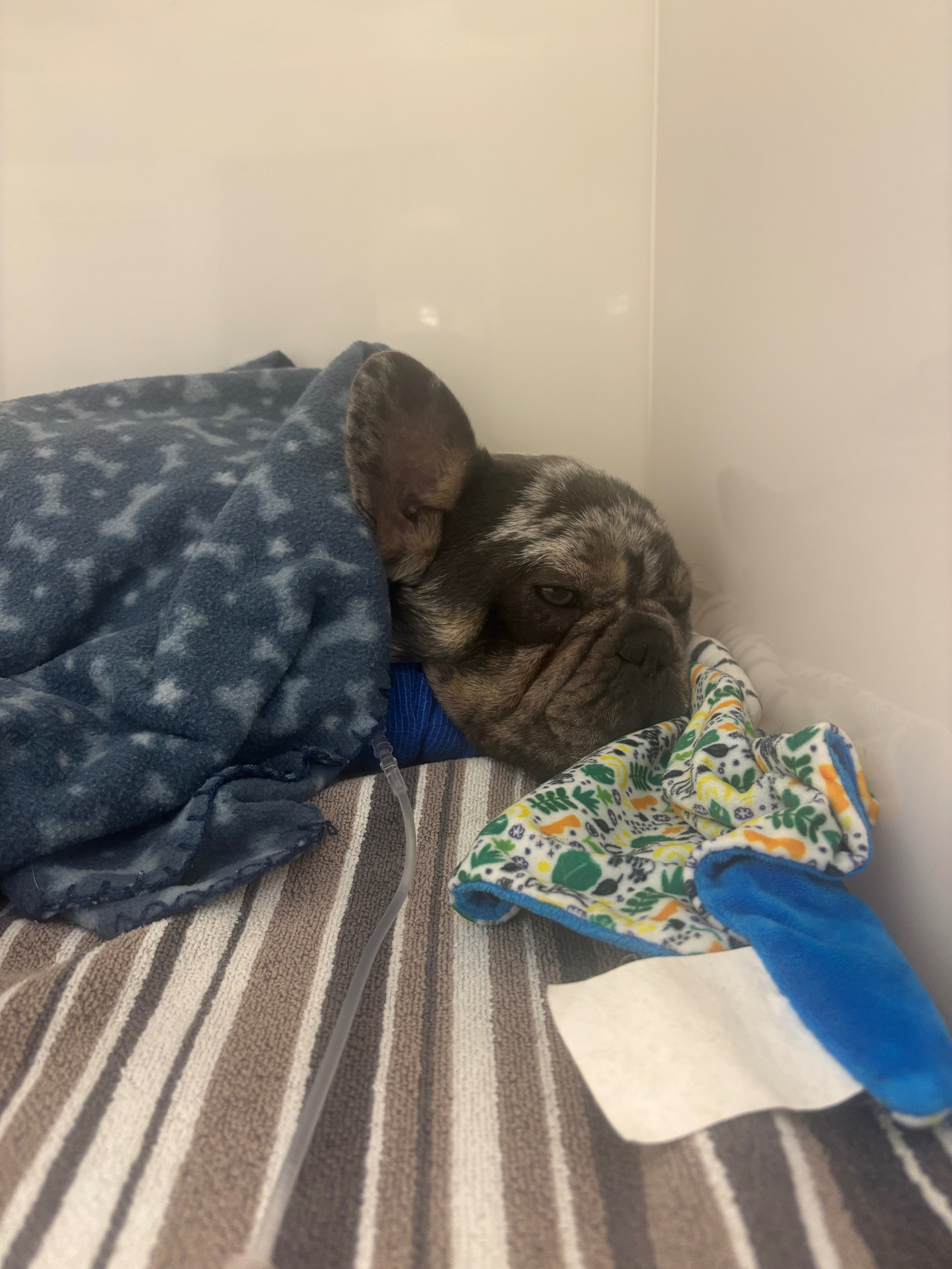 The next morning, I trusted my instincts and took him for a second opinion at Vintage Vets in Margate. They acted immediately — running urgent blood tests which confirmed that Arnie was in kidney failure. He was admitted straight into their veterinary hospital, where the incredible team began the fight to save his life. Through multiple IV fluid treatments, they managed to stabilise him and quite literally save his life for the first time.