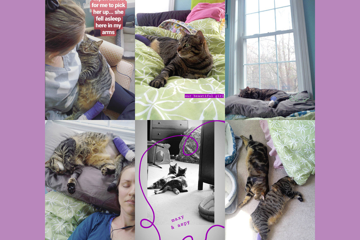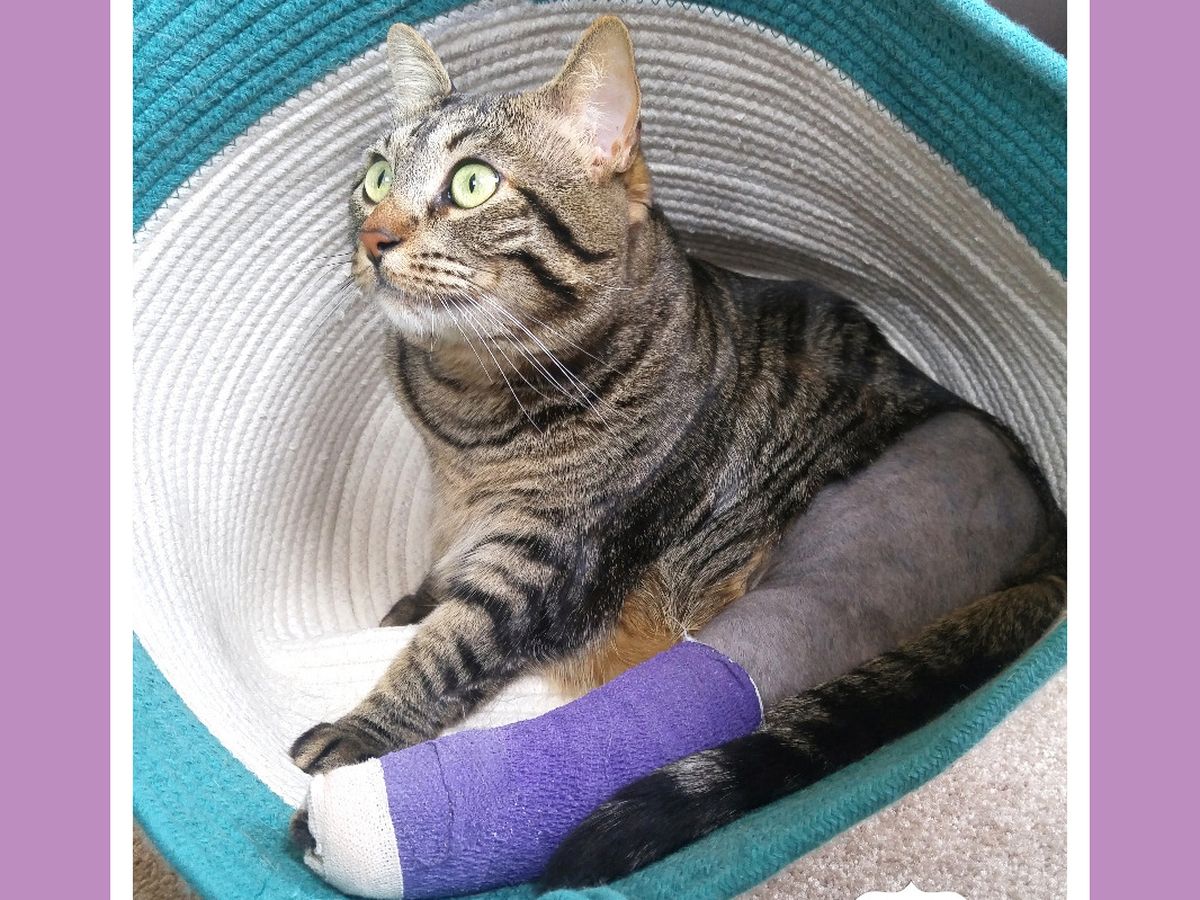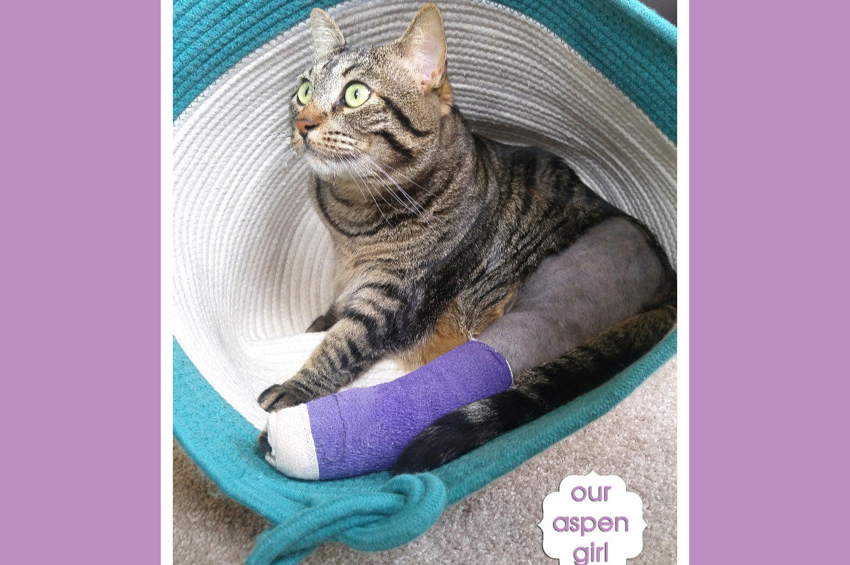 On April 15th, around 4:30pm, after walking with our triplets in the yard, I discovered our sweet Aspen lying on the ground in shock, with a broken leg. I had been apart from her for only a moment. I scooped her up in a panic and rushed her to our emergency pet clinic after being denied an urgent appointment at our local vet. I arrived at the ER about 30 minutes after discovering her injured. Aspen was yowling.
