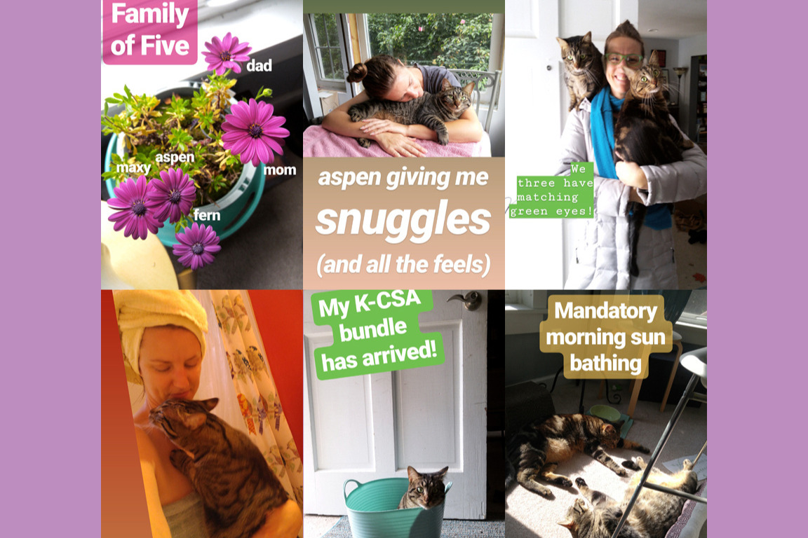 Aspen is our baby girl, she is a sister to Fern and Maxwell. They are our triplet tiger tabbies, born on September 16, 2017. We brought them home with us in November 2017. Aspen is a silly girl, she chased her tail as a youngster. She loves to ride on our shoulders, she can jump wide distances, she loves to eat fresh grass and give me face baths. Aspen is our little water bear, she likes hanging out with us after a shower or bath. She is also quite the fashionista, I'll find her wearing a shirt or pants that were left on the floor. She likes to chirp, chatter, meow, purr, tell stories and demand attention if it's time to snuggle.