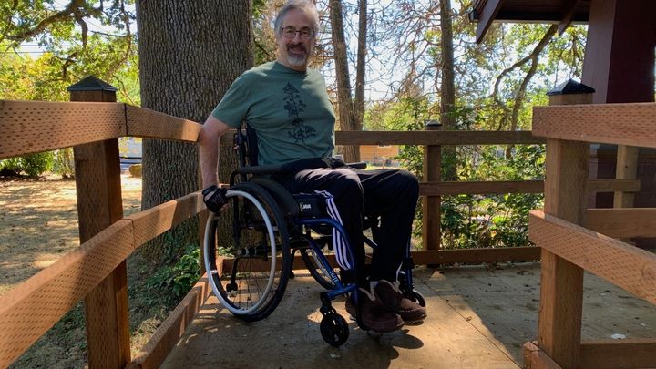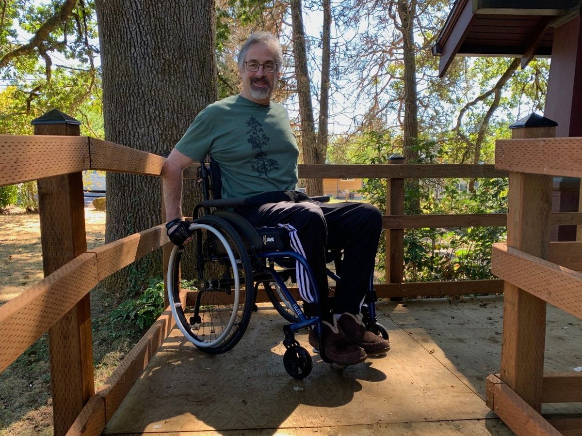 Joel was skiing at Mt. Hood Meadows when he took a bad fall and suffered a number of serious injuries, including broken bones, internal injuries, a concussion, and damage to his spinal cord. He was rushed to Emmanuel Hospital in Portland, Oregon where he had emergency surgery to fuse his broken vertebrae and then a second surgery to repair a broken hip. Joel spent the next three months in the hospital, nursing home care, and finally in an intensive rehabilitation program at the Rehabilitation Institute of Oregon before he was able to return home. All this during the COVID-19 pandemic. The broken bones and internal injuries have healed with time, but the spinal cord injuries caused long-term loss of leg mobility and a number of associated on-going health issues.