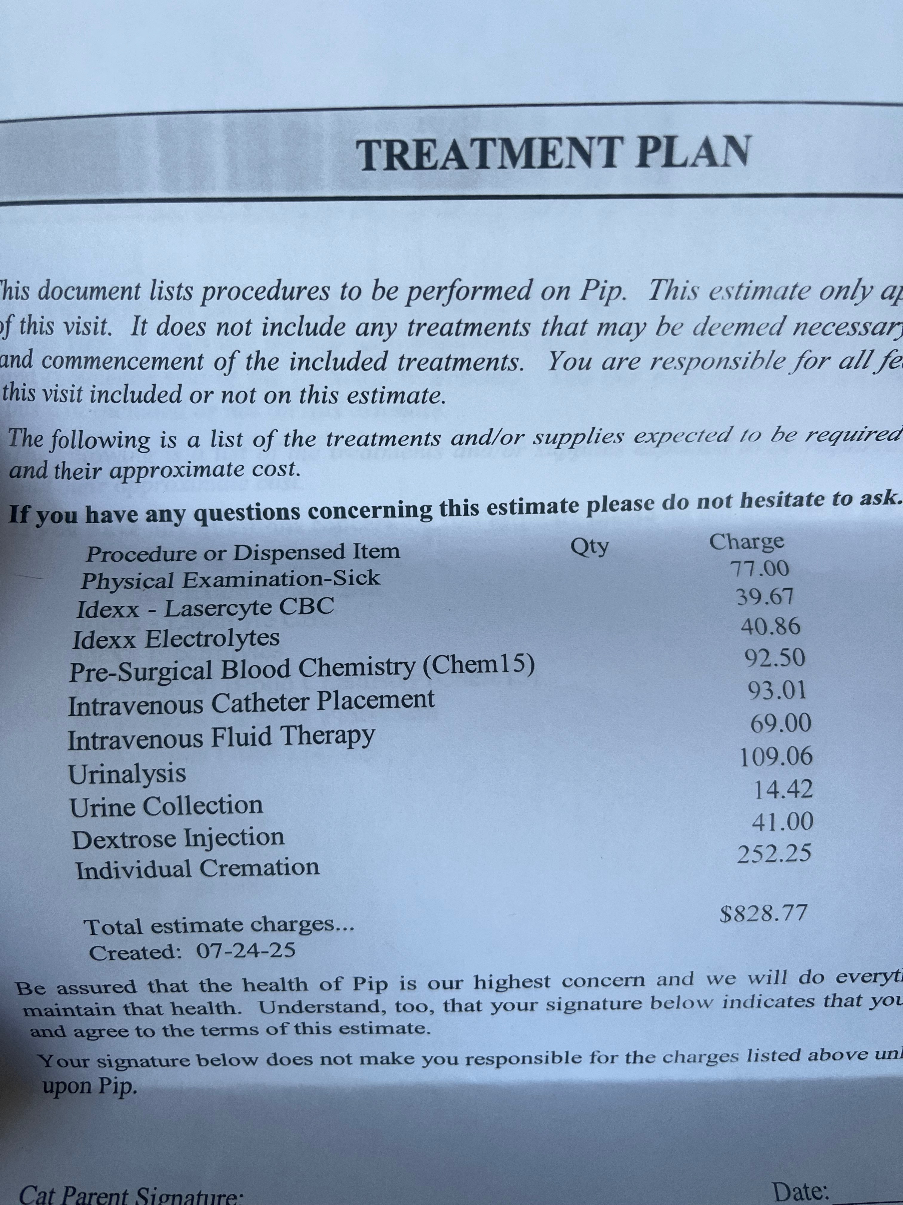 His three vet visits total about $1,815. I am hoping for some assistance with this, and I intend to put any funds into savings for my other elderly cat, Arry.