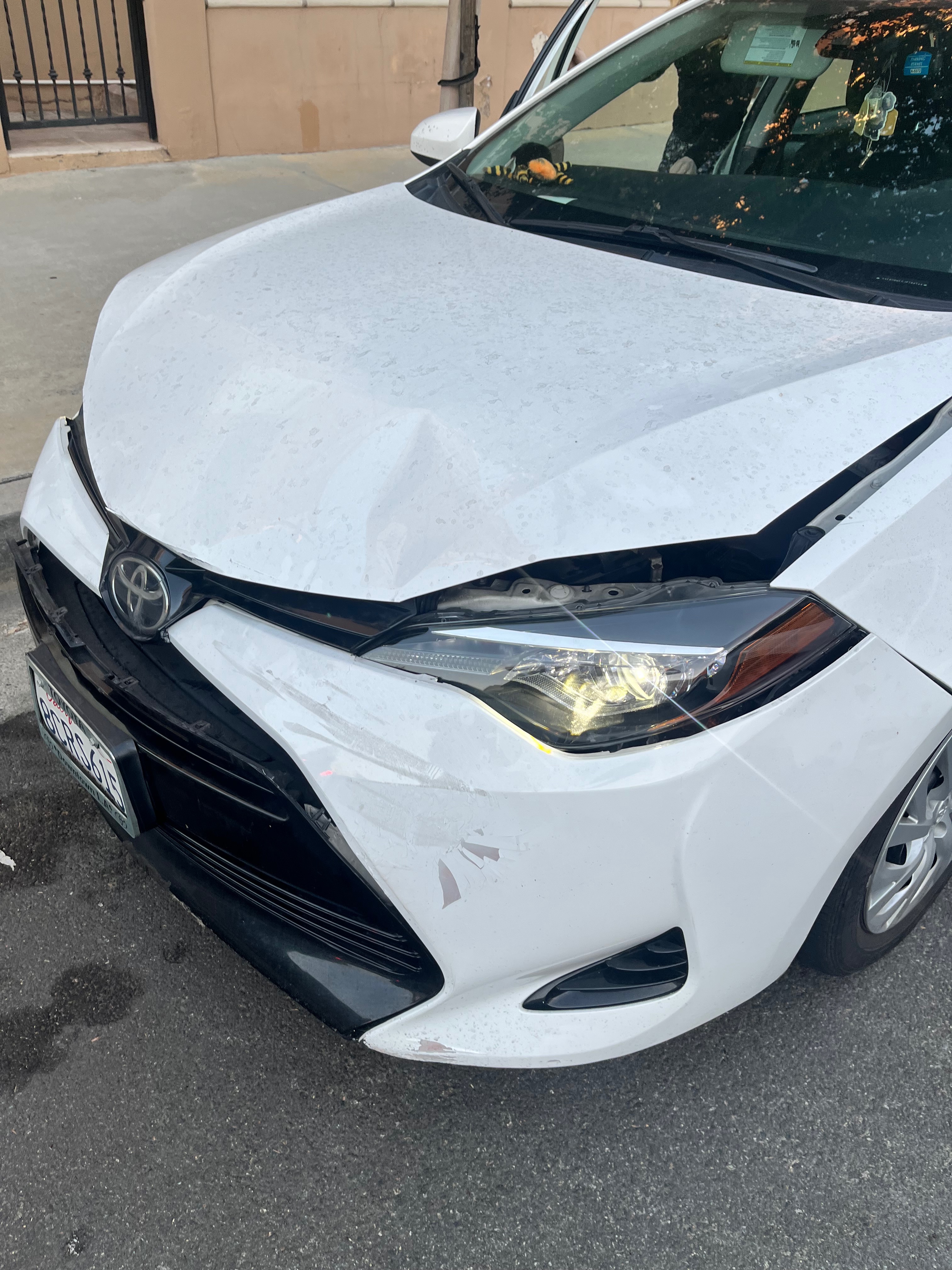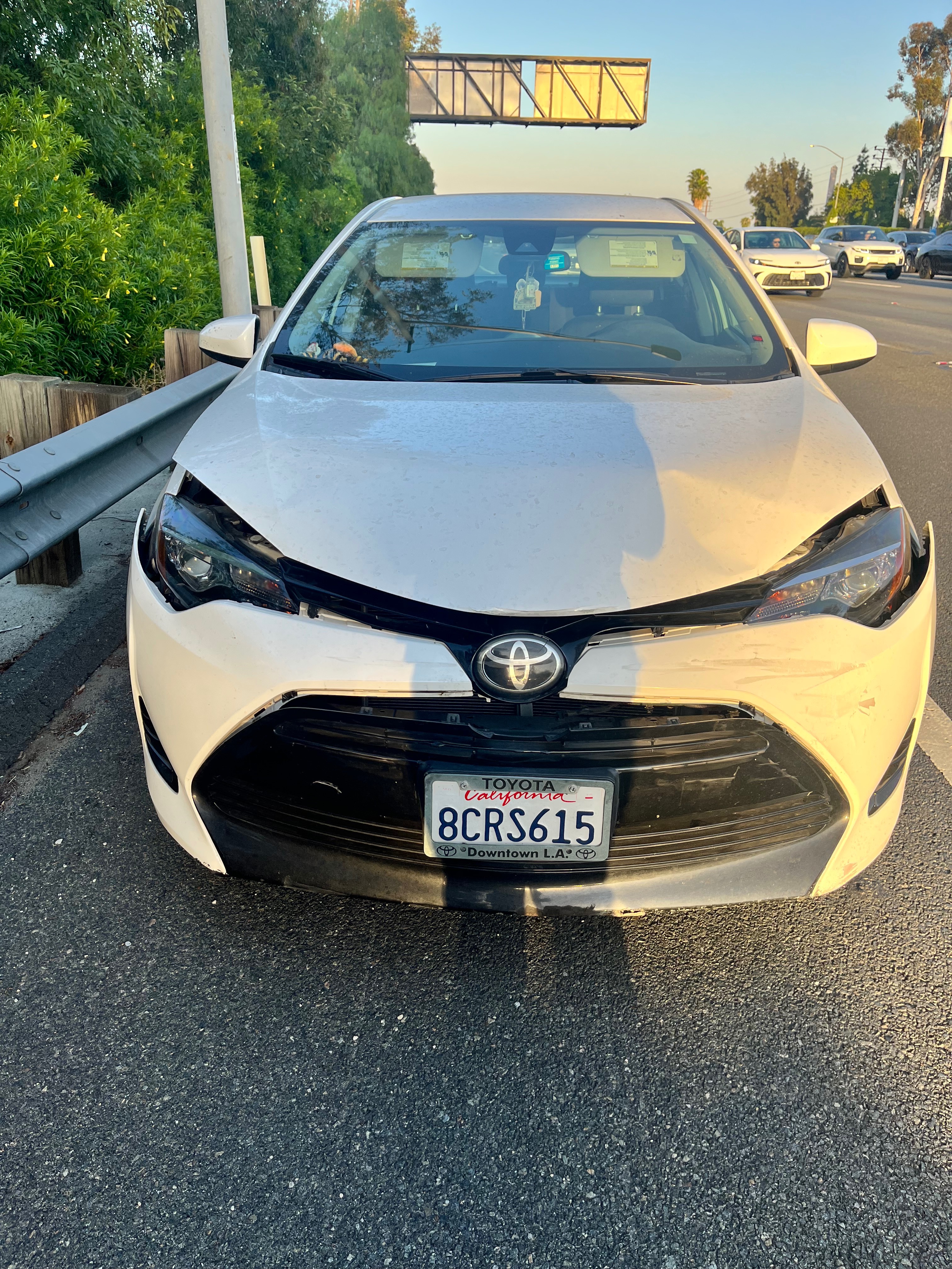On my way to a rehearsal my friend and I were on the freeway when we got into an accident. A car two ahead of me slammed on its breaks causing the car in front of me to stop and because of the sun setting, the glare from the freeway signs hindered my sight and I couldn’t see ahead of me in time to hit my breaks quickly enough.