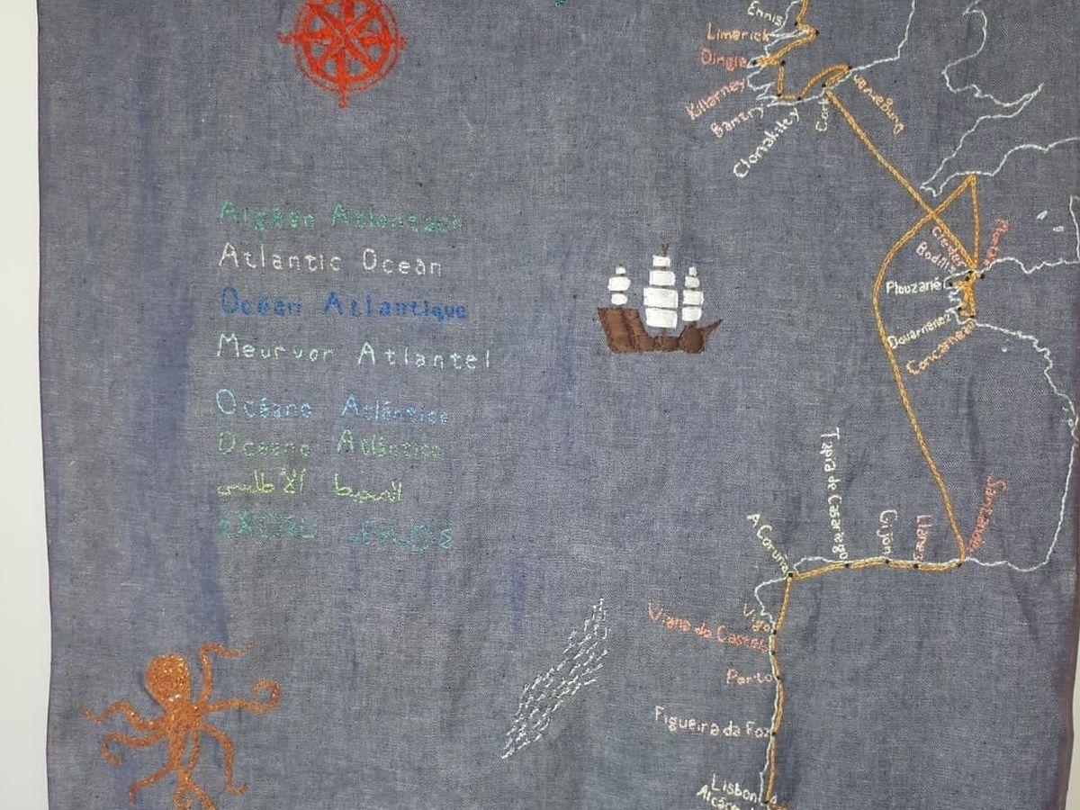 I am a textile artist making a journey this autumn along the Atlantic Coast. Over two months, I'm visiting 42 independent yarn shops through Ireland, Brittany, Spain, Portugal and Morocco, crocheting a scarf each day, as well as a piece for a large blanket which, sewn together, will connect all of those places and people together. In such times of division, it seems important to be reminded of the ancient connections along this coastline, where we all share the same ocean, the same wind and the same sunset, and because of these simple everyday things, I am making a simple journey, camping and travelling by bus and ferry. After the journey, I will be exhibiting the blanket, an embroidered map I have made of the route, along with photos of the ocean and the yarn shops.