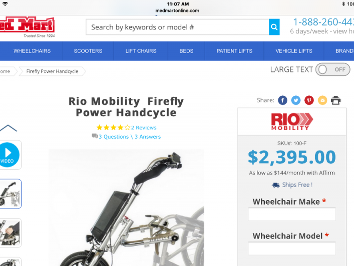 Many of you know about my motorcycle accident last year and know I’m in a wheelchair with a spinal cord injury. Well I’m looking for more independence so I will be able to get out more during the day since I just sit in my garage all day. This attachment will help me out tremendously, I would be able to go to the store, be able to cruise around the block, be able to get in and out of my house, and just being able to get around so much easier. This would make my life so much better. Thank you so much for taking the time to read this and as much help would be greatly appreciated!