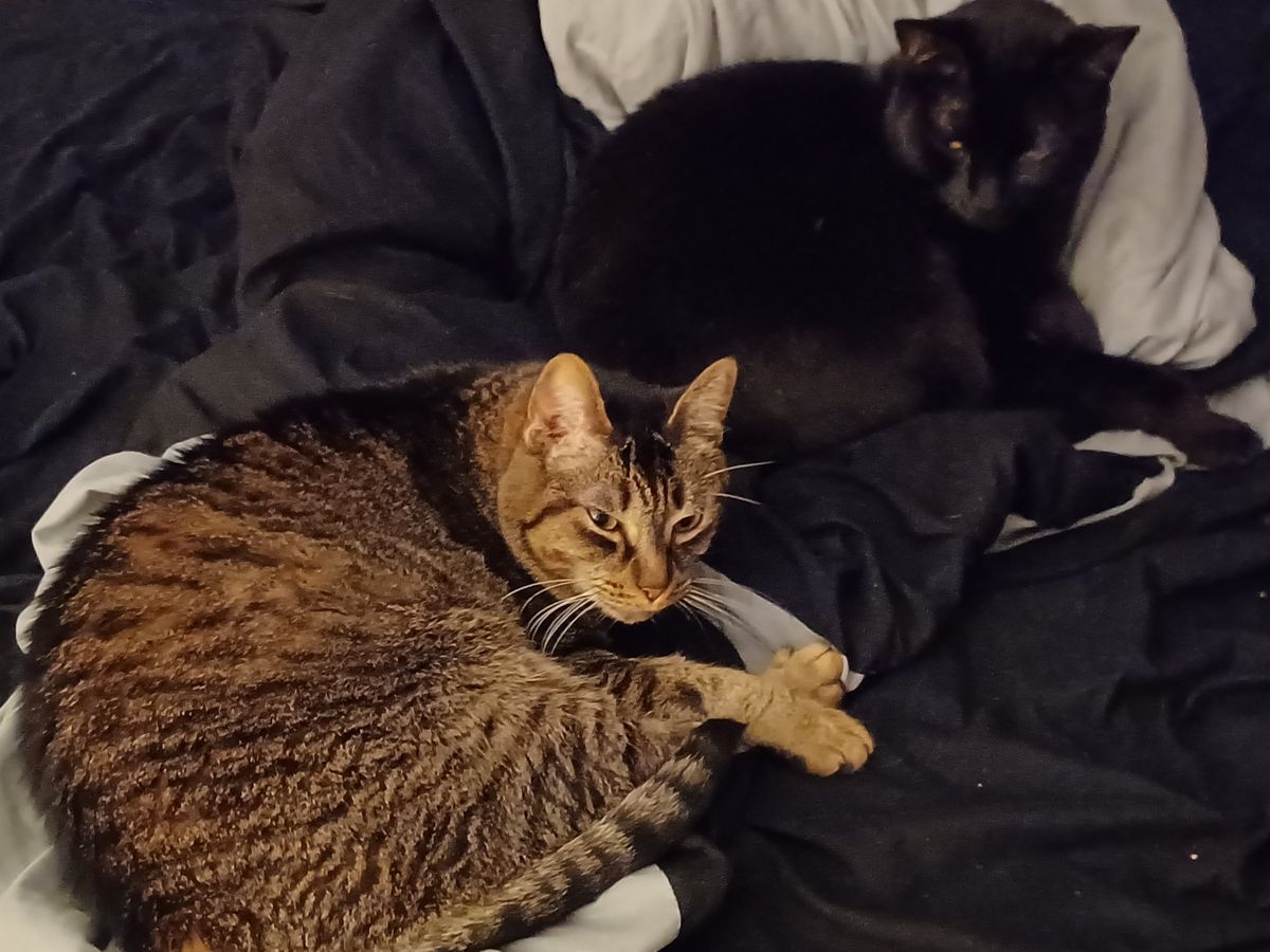 The cats pictured here are Koga (grey tabby) and Noodle (the void), my little companions. I'm Natalie, I go by Attie for short, and I'm trying to move out of Texas within the next month. I struggle immensely with my mental health, and thusly I'm currently unemployed (working on changing that) and my retirement and savings have run dry. I have a month of rent left to take care of on my current lease, and I need to keep the lights on until then and I'm already behind. To help me make it through the month and afford moving costs to get out of Texas and to my next destination in Virginia, I'm requesting a humble loan from anyone willing and able to help a friend out.