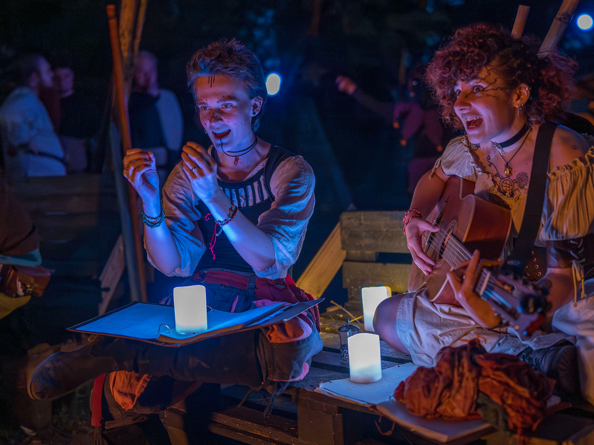 Wir sind Sam und Zoe. Zwei musikbegeisterte Personen, die nun schon seit fünf Jahren hauptsächlich im LARP-Kontext Musik machen. Ihr könntet uns auch als Kashta und Arvana vom Drachenfest, der Ulen Mühle, den Katakomben in Köln oder aus der Einhorn Taverne in Hamburg kennen. Unsere zwei abenteuerlustige Barden bezeichnen sich selbst als Balladenbarden und geben diverse gecoverte und eigene Musik zum Besten. Von traurig dramatisch, über romantisch liebevoll, bis hin zu abenteuerlustig dämlich haben wir fast alles und noch mehr!