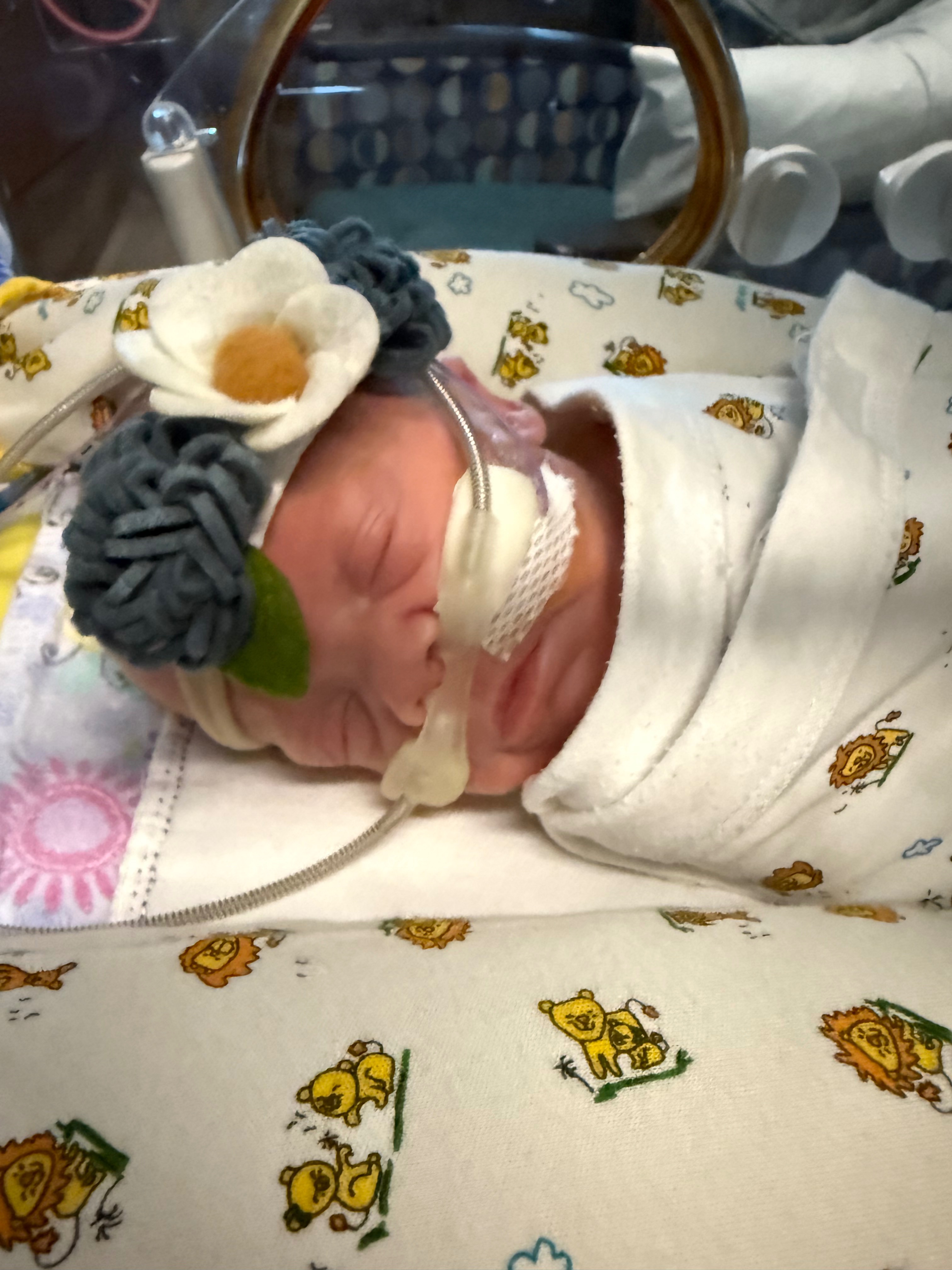 Autumn Rae Michel was born the morning of 6/4/2025 at 27 was weeks and 2 days weighing 1 lb 8.9 oz. She spent some time in the micropreemie unit for a bit before graduating to the NICU room she is in currently.