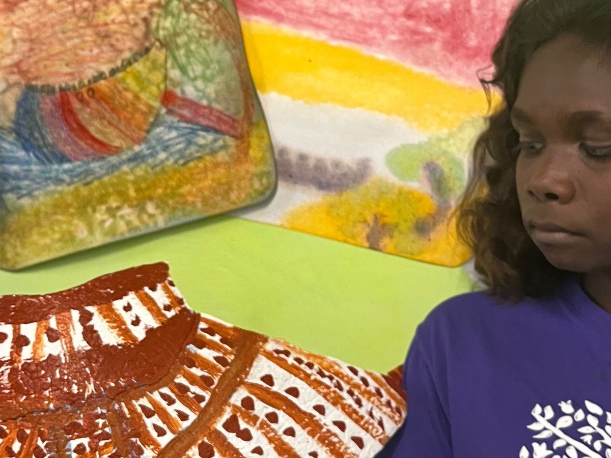 Ava is a Kunwinjku girl attending a Steiner School in Darwin since term 2, 2023. Whilst attending school Ava is in kinship care with her little mother/younger aunty and her grandmother, who is also her teacher.