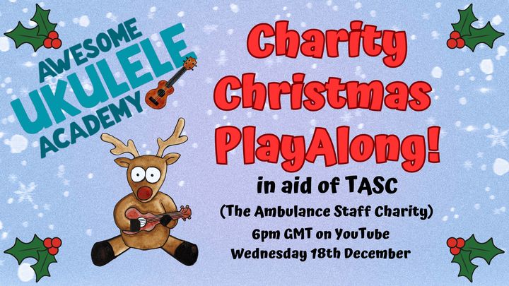 The Awesome Ukulele Charity Christmas PlayAlong will be on Wednesday the 18th of December at 6pm GMT on YouTube.
