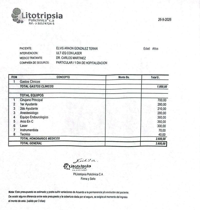Lamentablemente, como familia no contamos con los recursos para asumir este monto en este momento, por eso acudimos a la ayuda de personas de buen corazón.